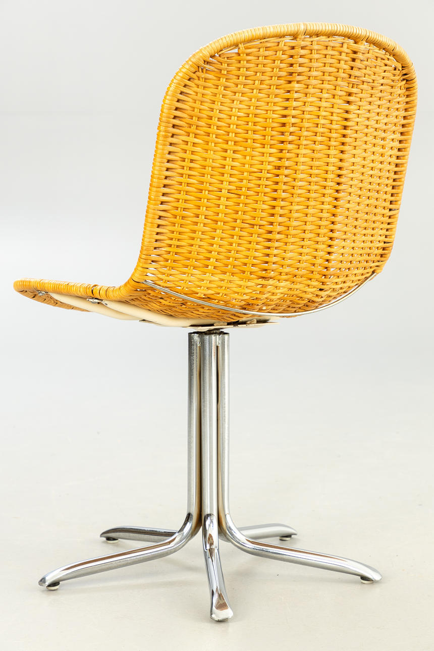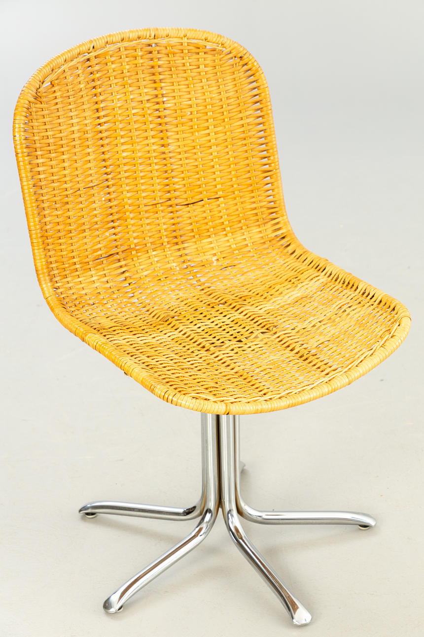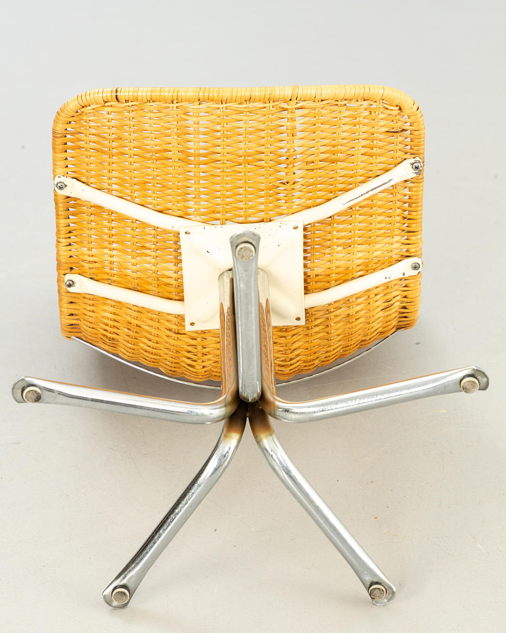 Signs of age and use. Small defects in the rattan weave, scratches and in places flash rust on the chrome.