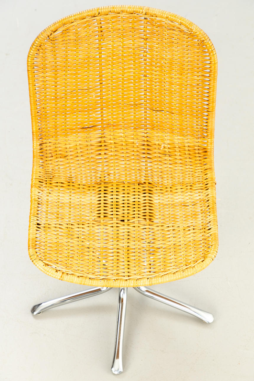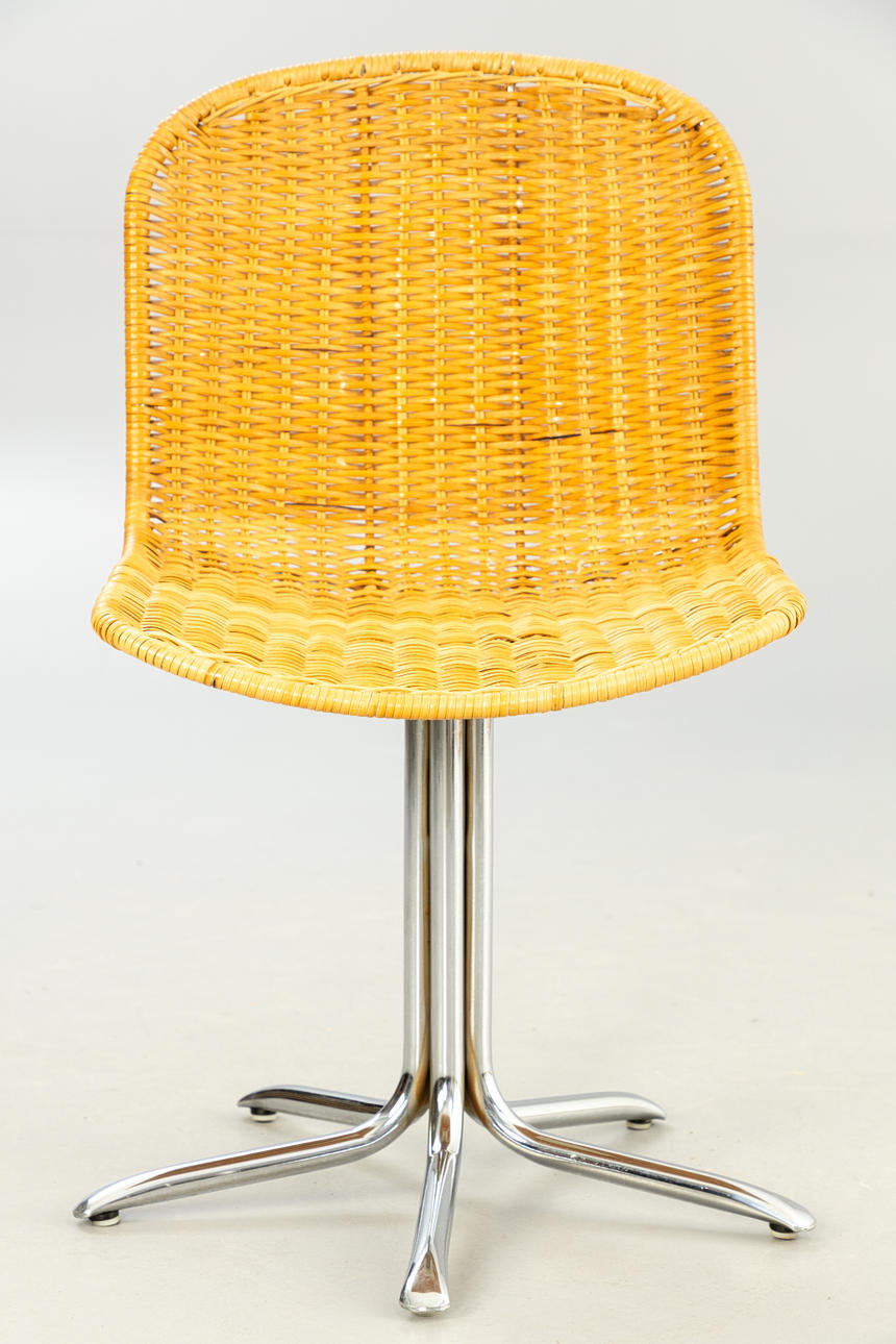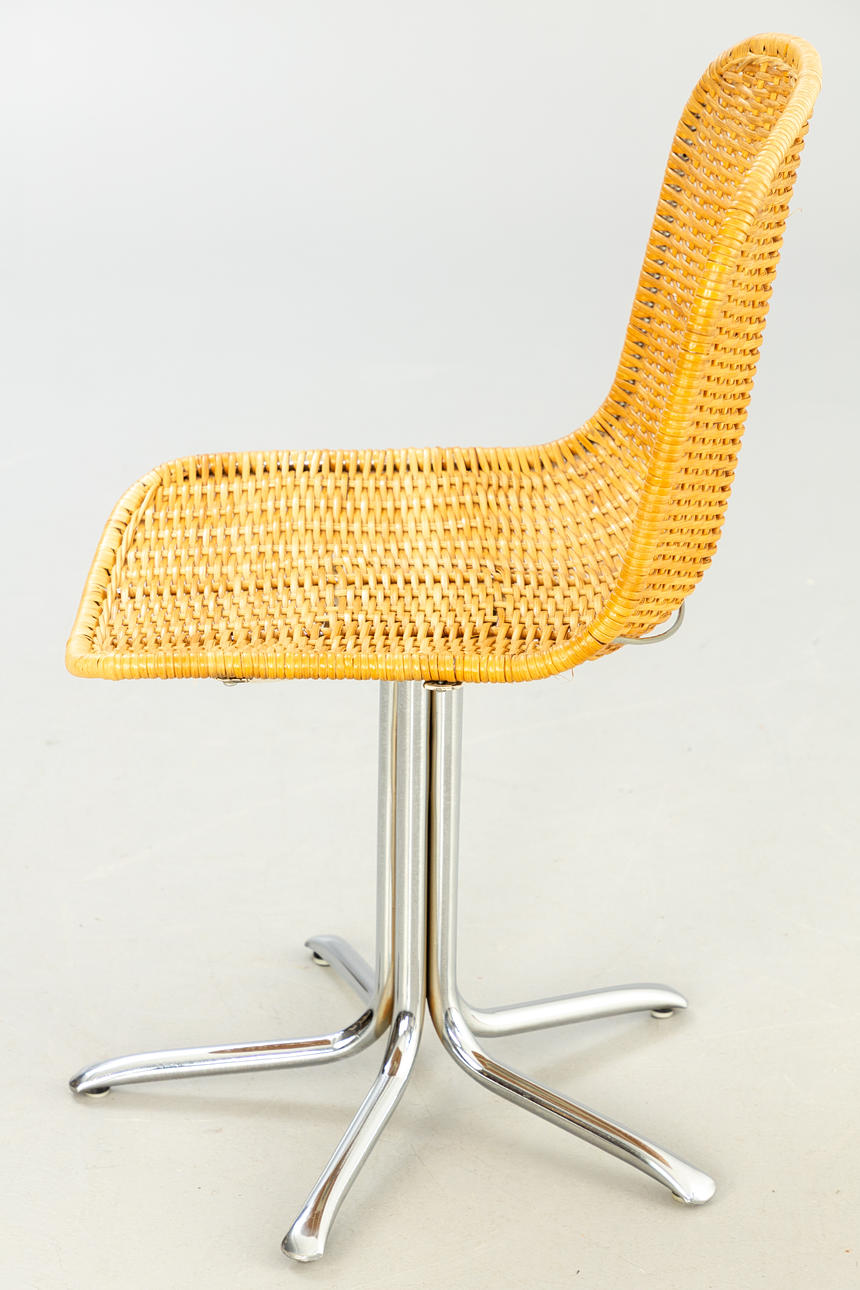Signs of age and use. Small defects in the rattan weave, scratches and in places flash rust on the chrome.
