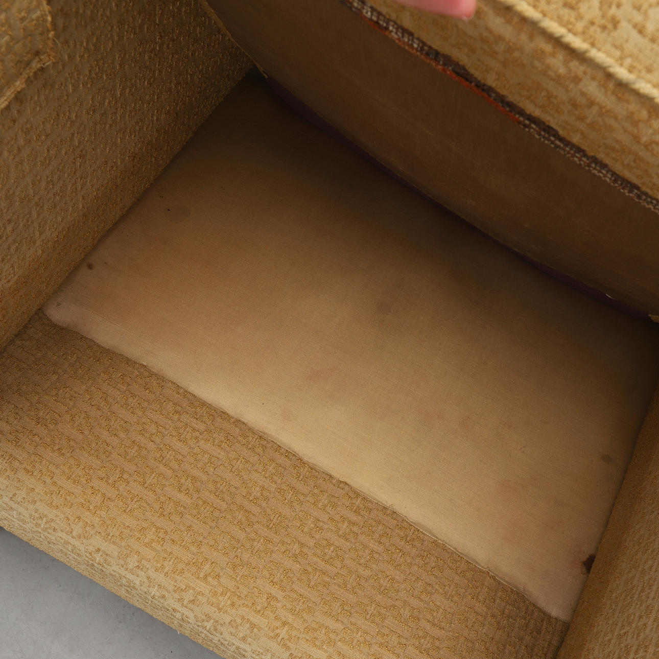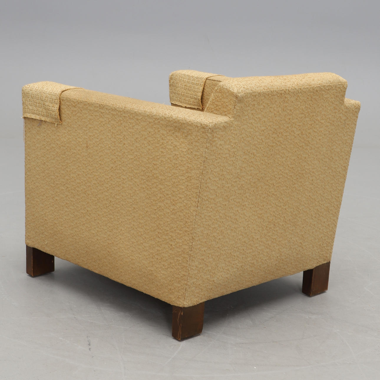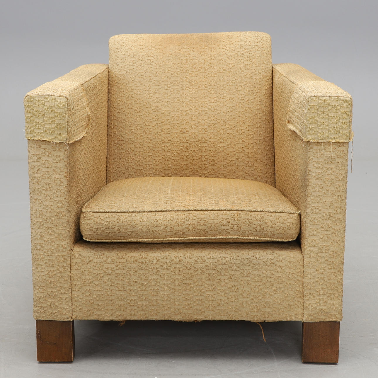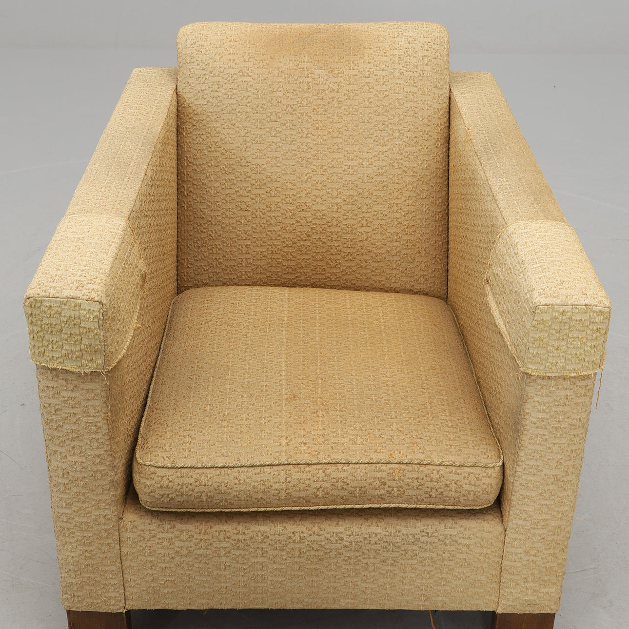 Straight shape. Elastic in the seat and back. Loose cushion in seat. Textile upholstery. Dark-boned rectangular legs. Width 72, depth 82, back height 70, seat height 38 cm.