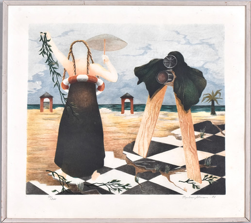 PAUL RENÉ GAUGIN. Lithography, 125/260. Composition with fish. Signed and dated 1967.
