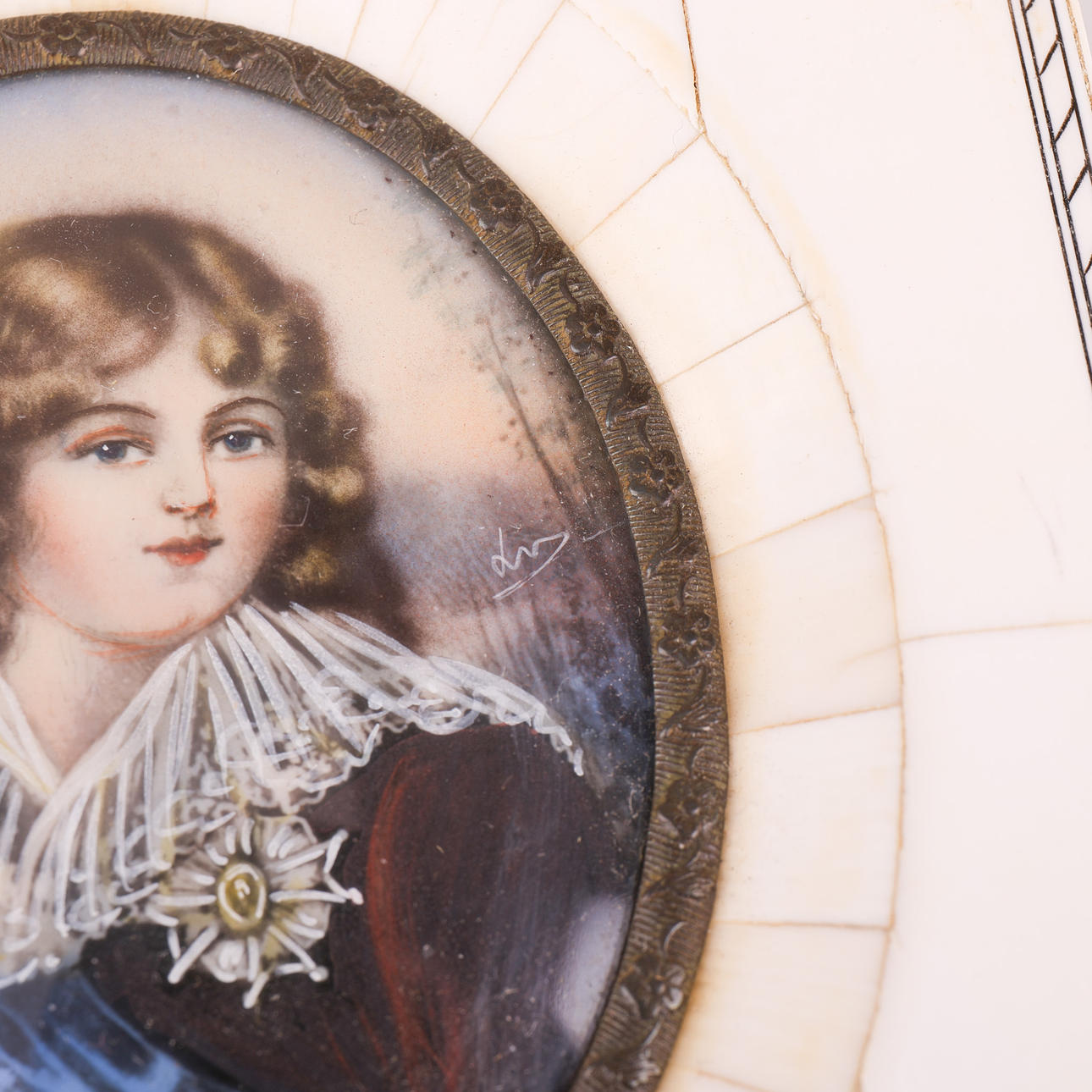 4341291. OIDENTIFIERAD KONSTNÄR. Miniature painting in bone frame.