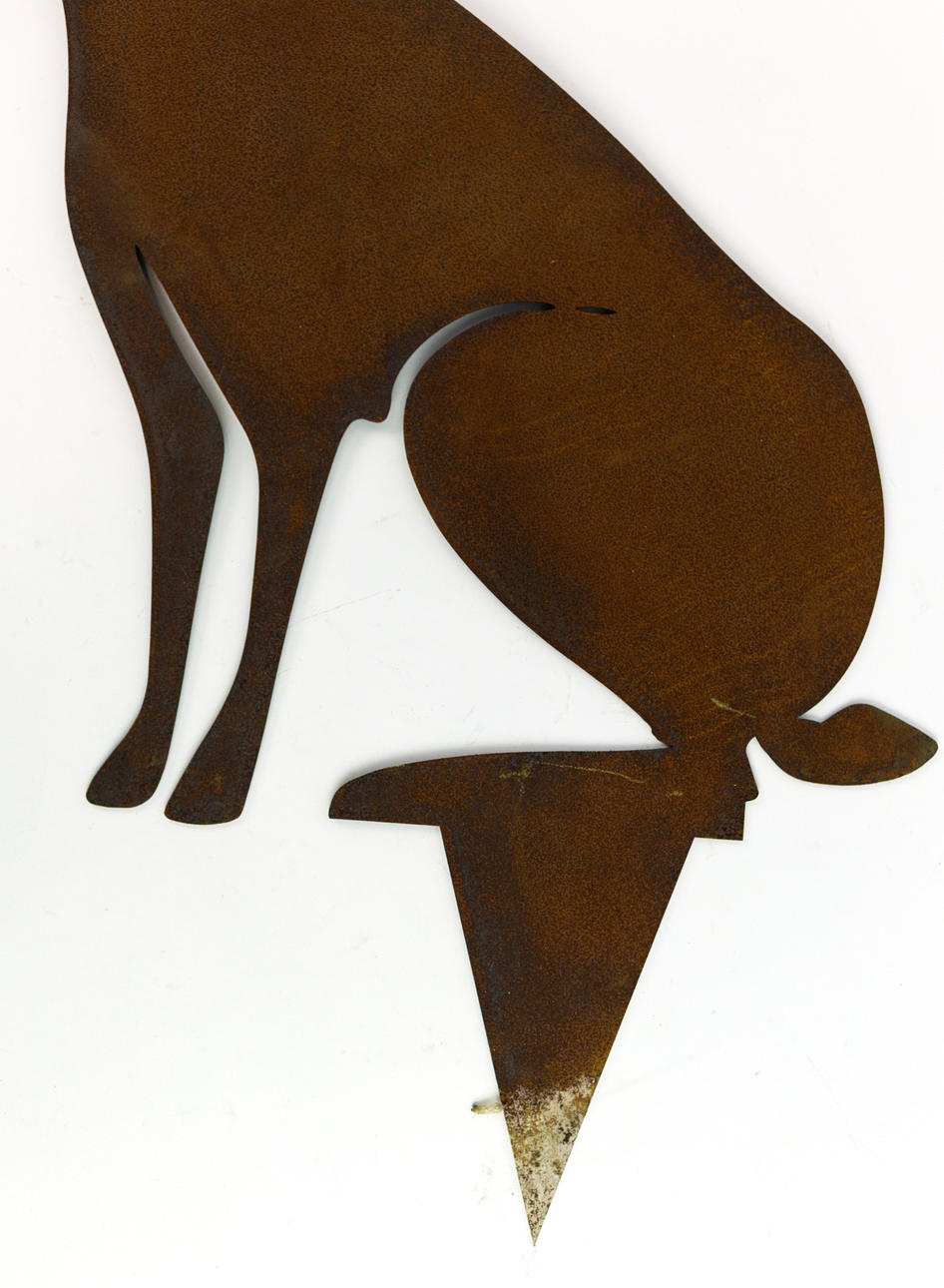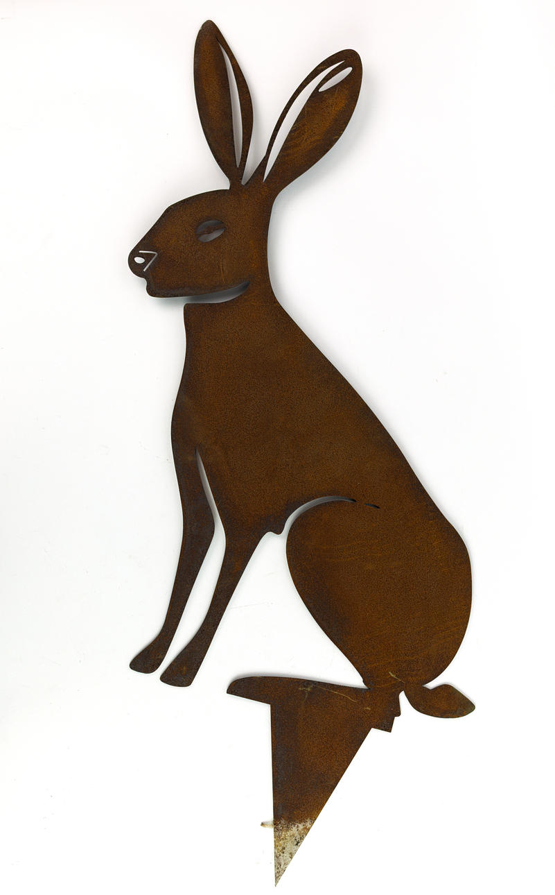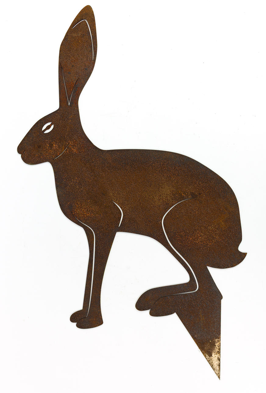 SEATED HARE SILOUETTE STAKES, A PAIR.