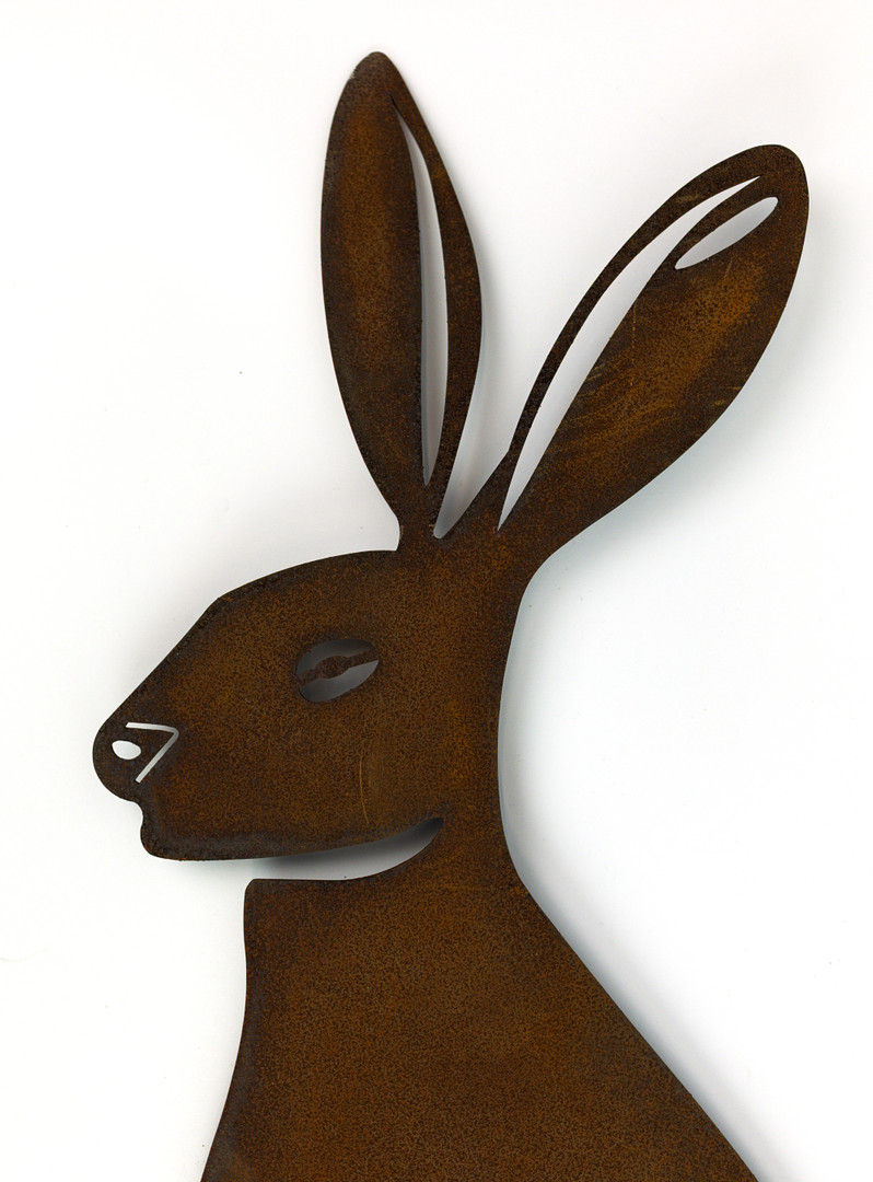 4341334. SEATED HARE SILOUETTE STAKES, A PAIR.