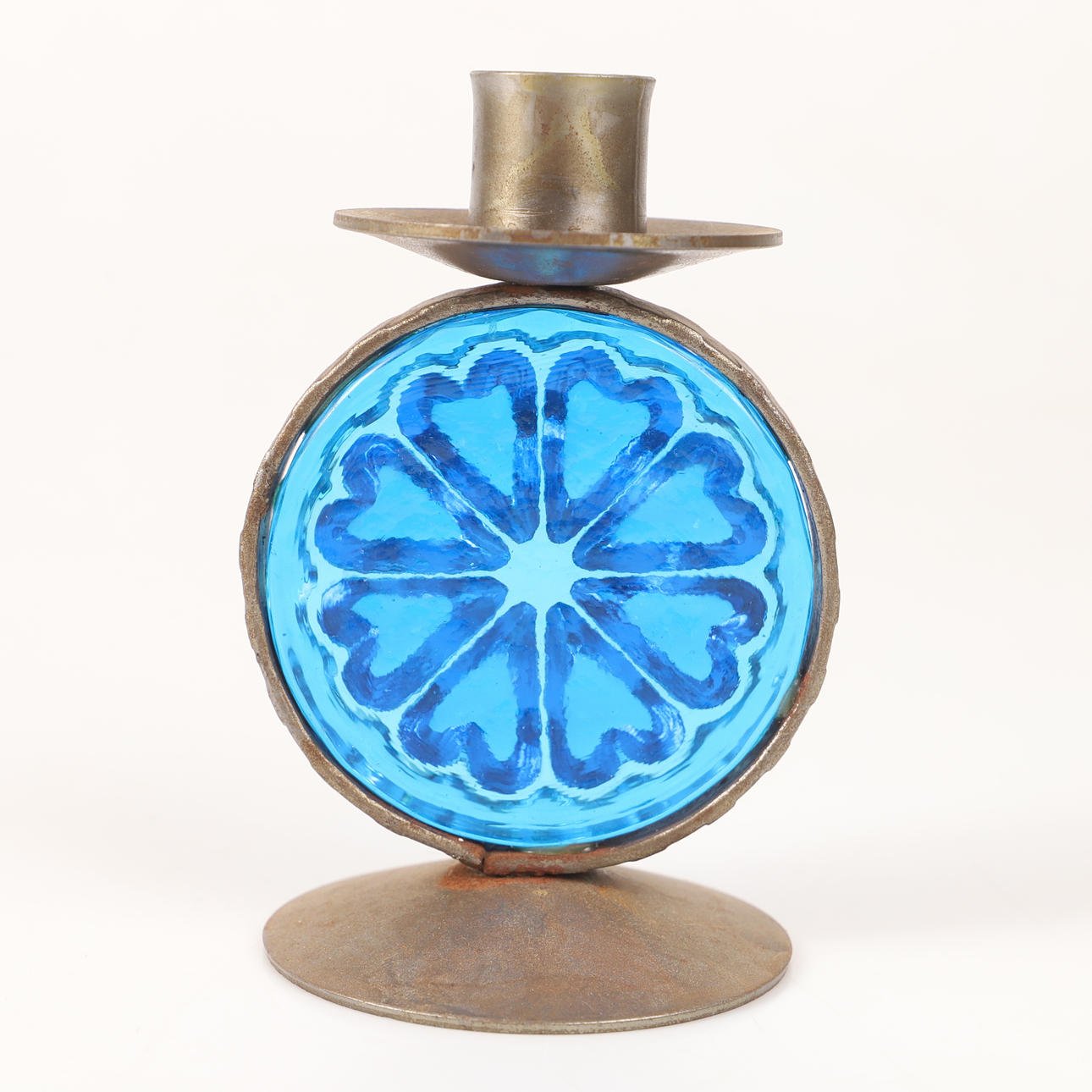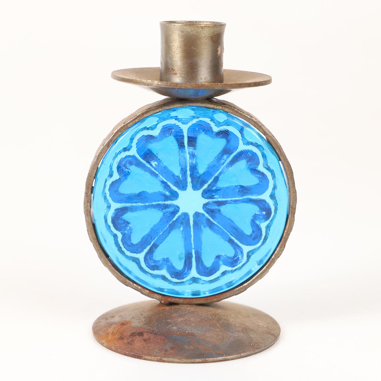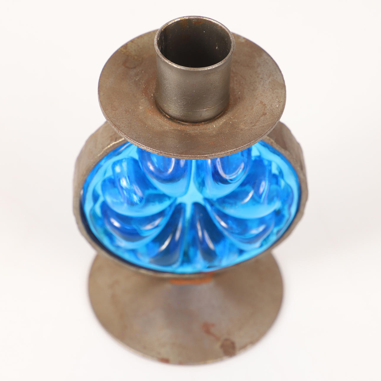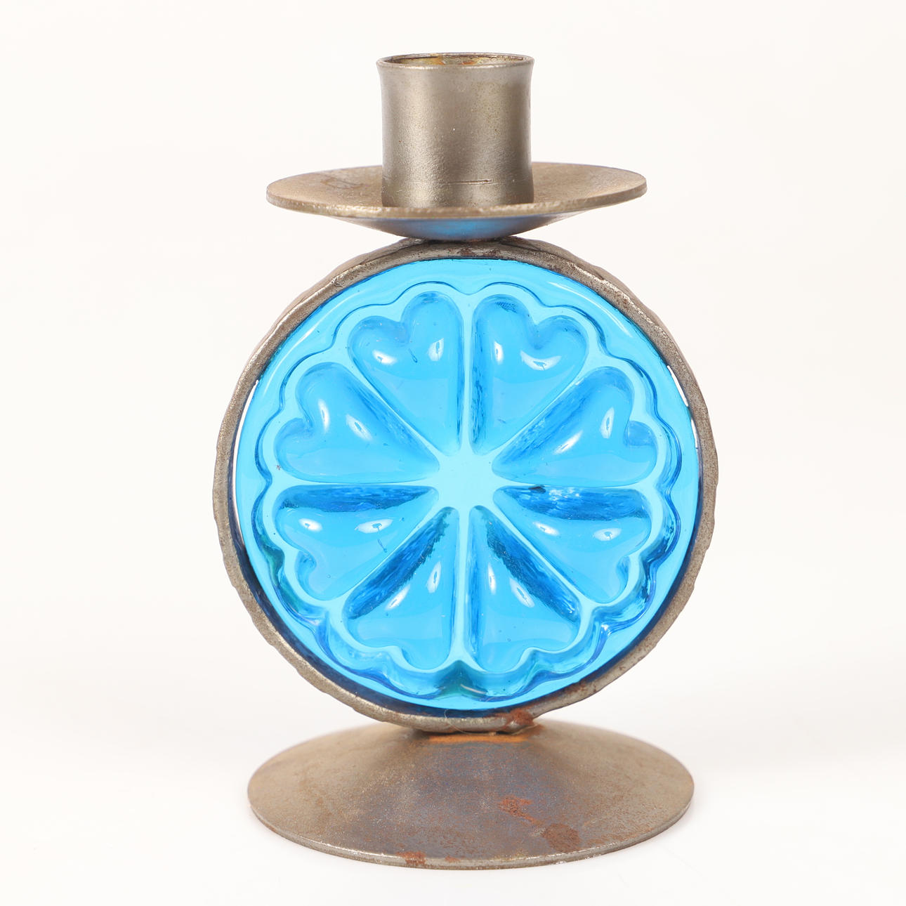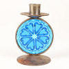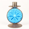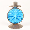 4341337. CANDLESTICKS, 1 pair, wrought with blue glass prisms.