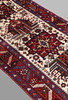 Main field with bright bottom color, medallions, as well as decor of stylized motifs. Main border with red base color and stylized flower vine.