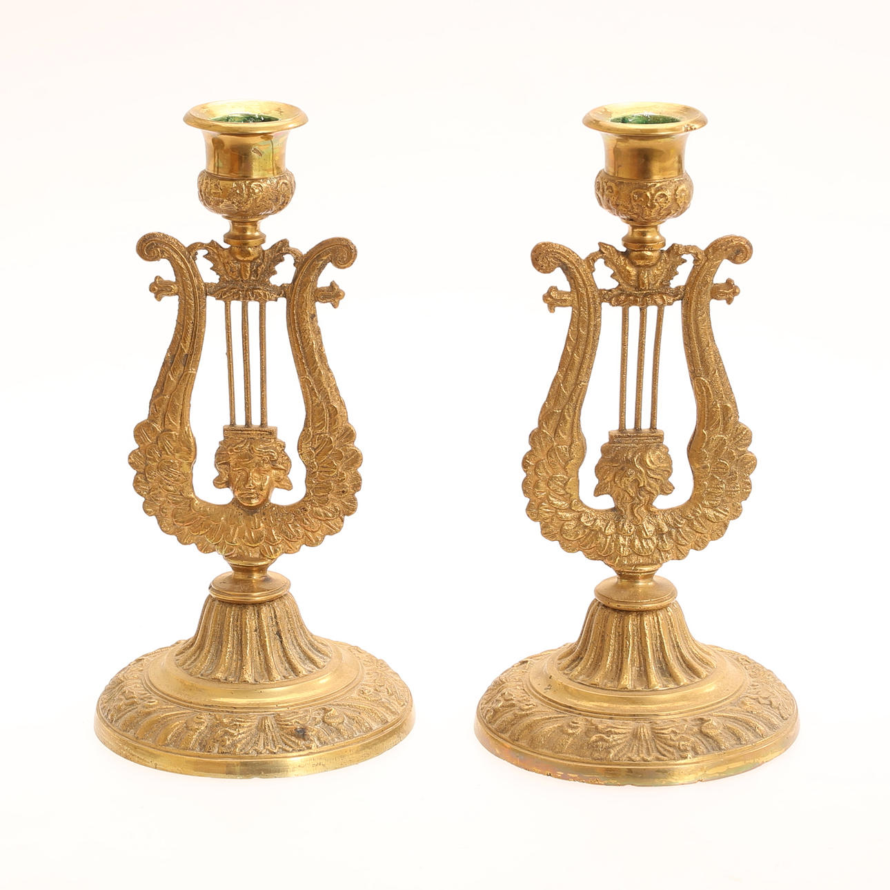 4342185. CANDLESTICKS, 5 pieces, brass.