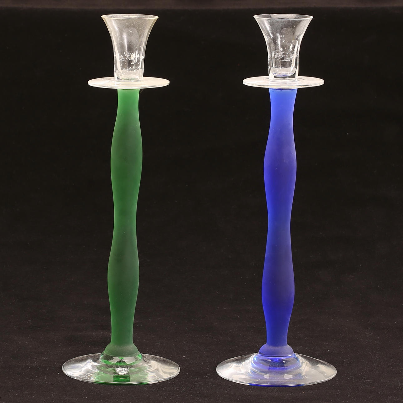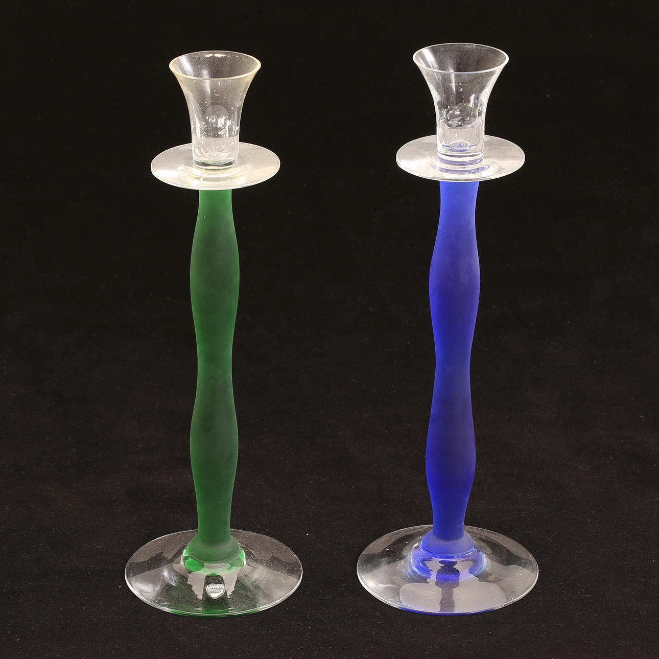 Two glass candlesticks, “Celeste”, Anne Nilsson, Orrefors.