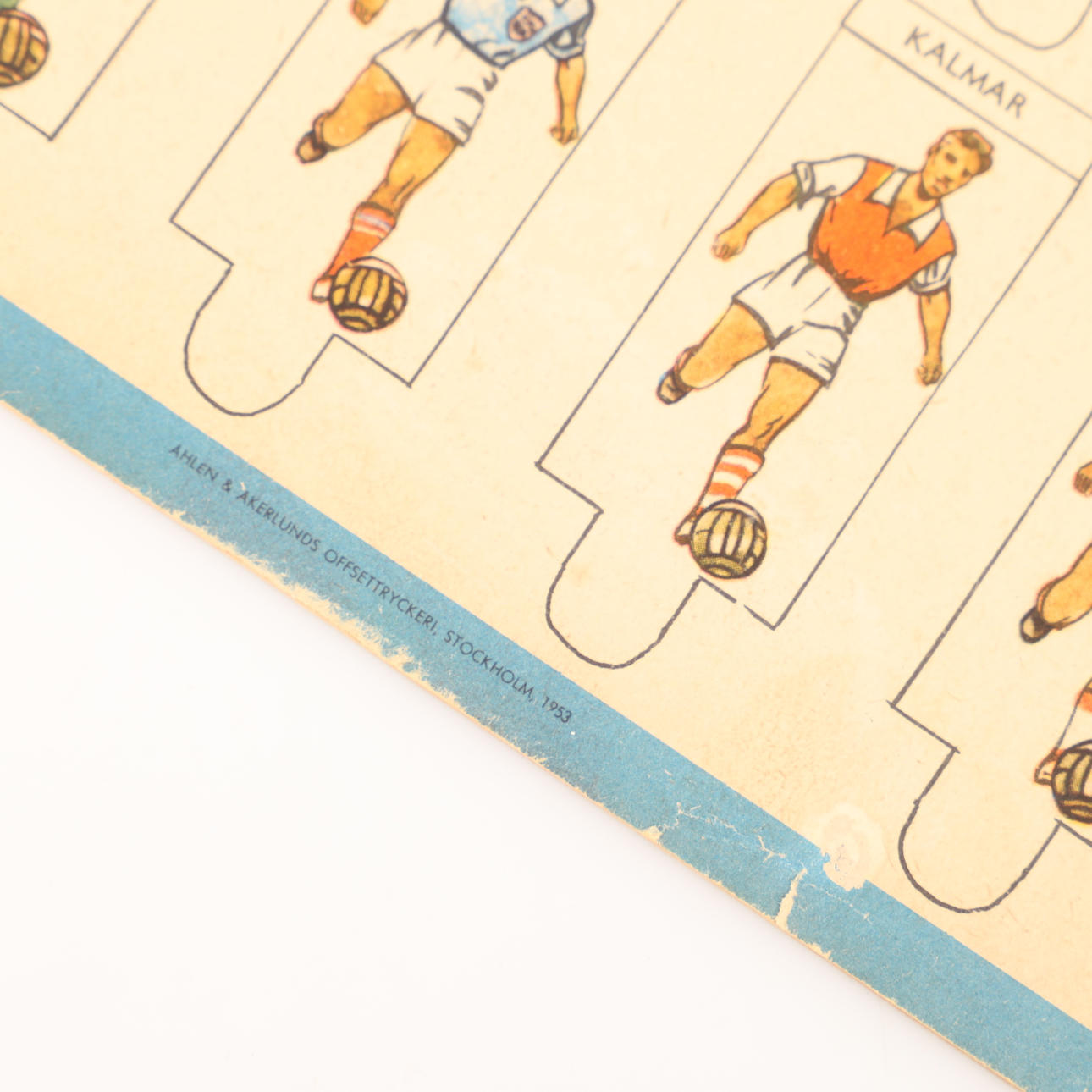 Normal wear and tear with a slight tear on the lower edge.