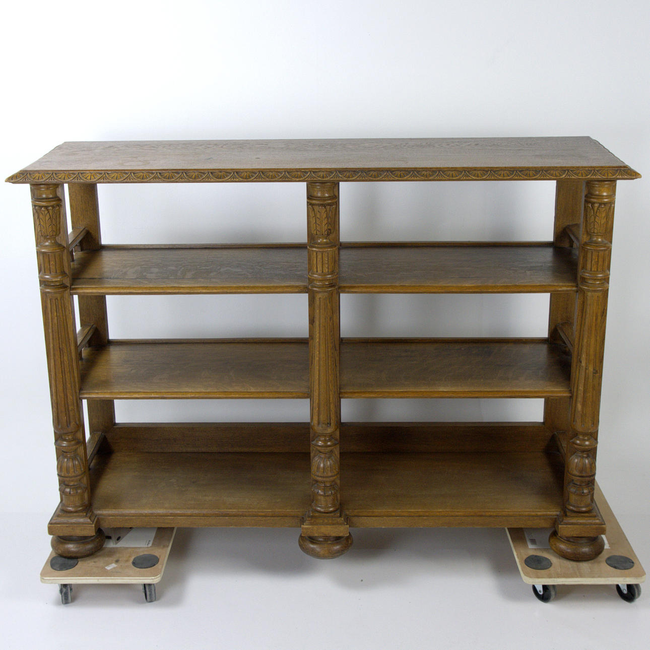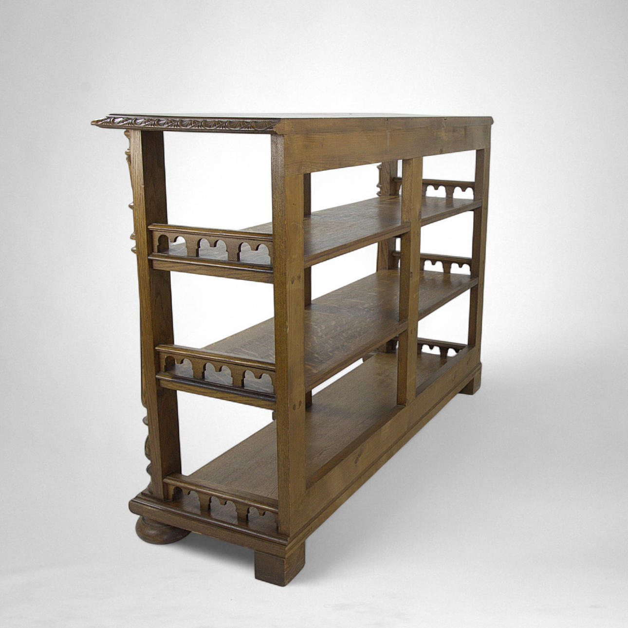 Length 139 cm, width 43 cm, height 97 cm. Two shelves. Open back.