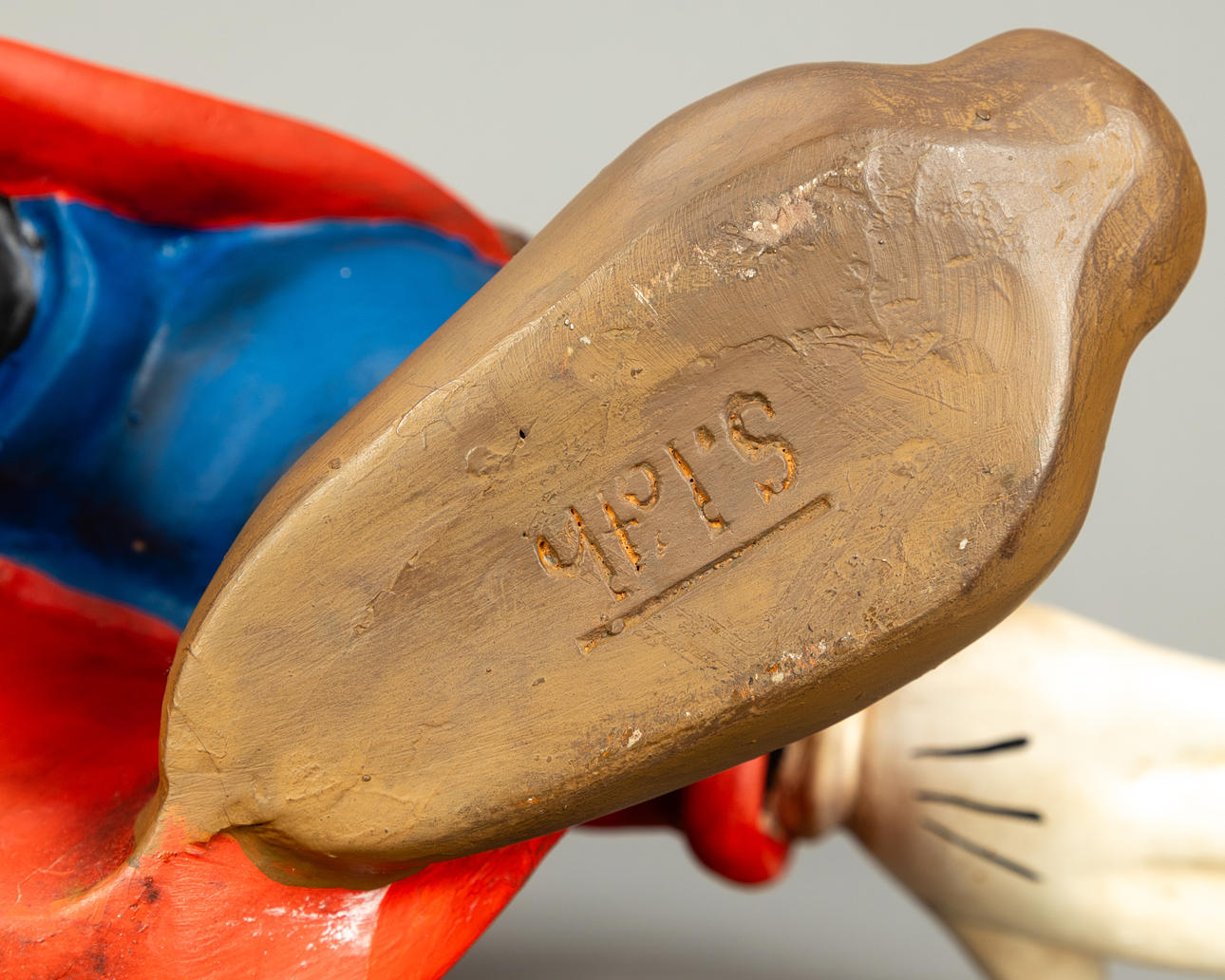 Mickey Mouse character in the role of the sorcerer's apprentice from the animated film “Fantasia” (1940). Signed “S. Toth” below and inscribed “Disney.” Hand painted modelling clay