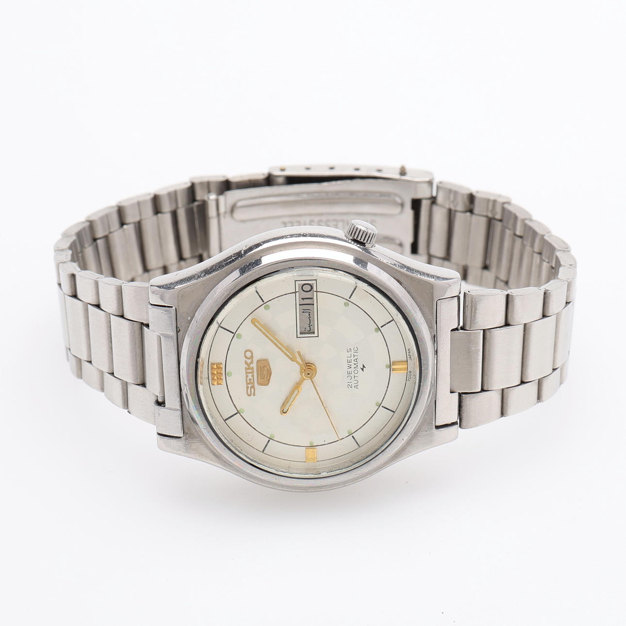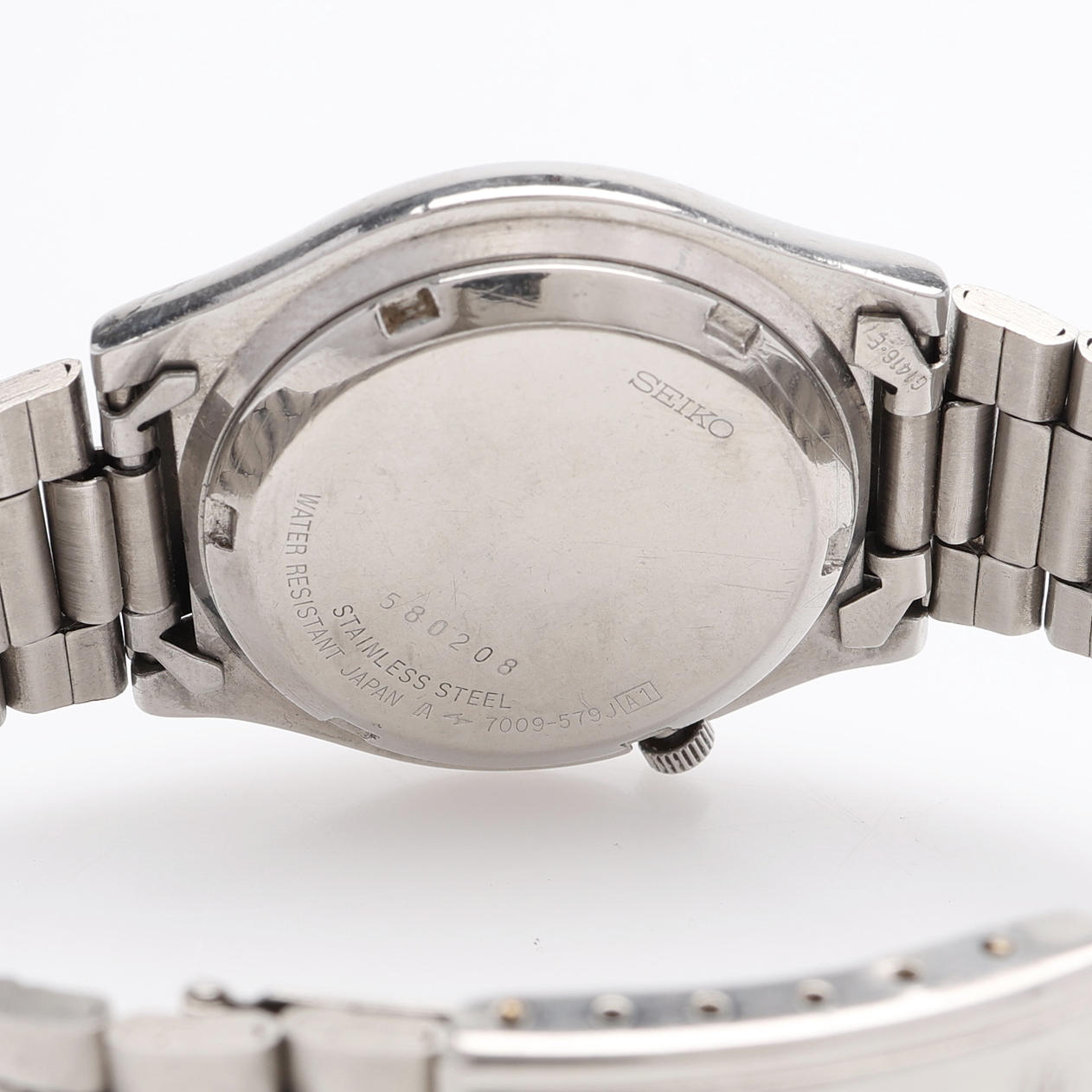 Case diameter 37.1 mm. Day/Date (English/Arabic). Ref. 7009-579J A1. Serial number 580208.