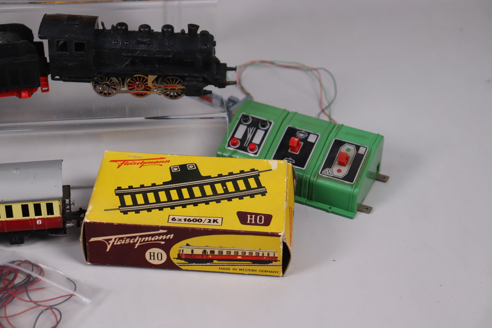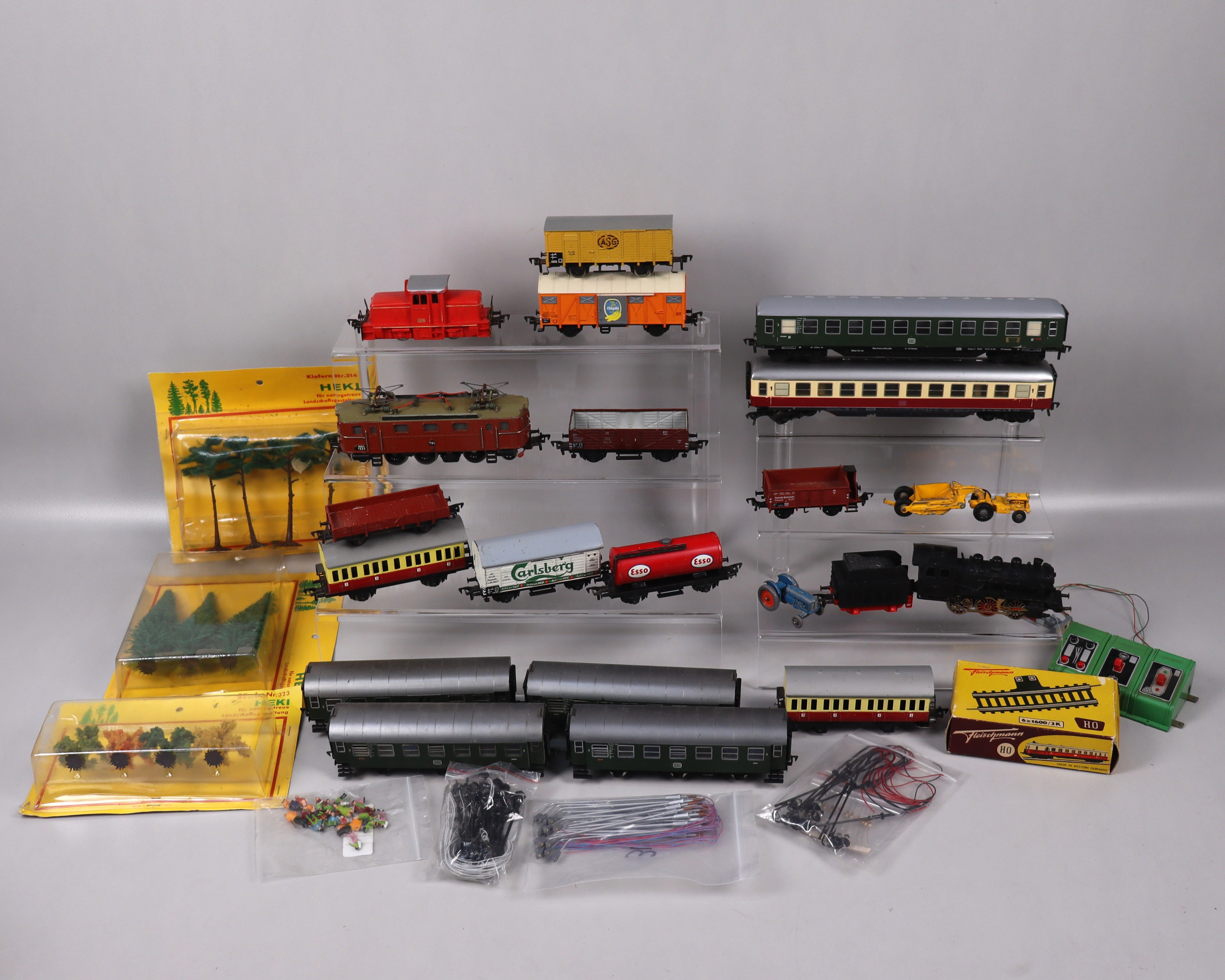 4343473. MODEL RAILWAY, Fleischmann, locomotives, wagons, rails and transformers.