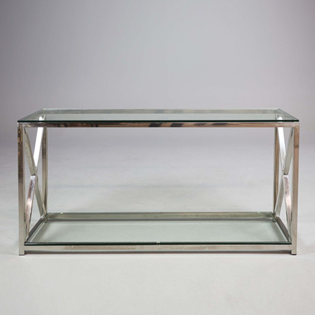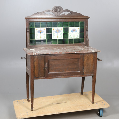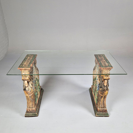 the rectangular marble top above a fluted frieze, all raised on tapering legs with carved swag decoration, 100cm x 30cm x 80cm high.