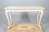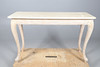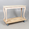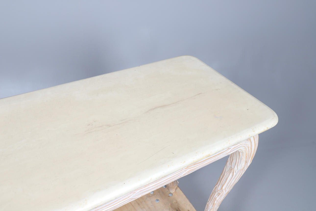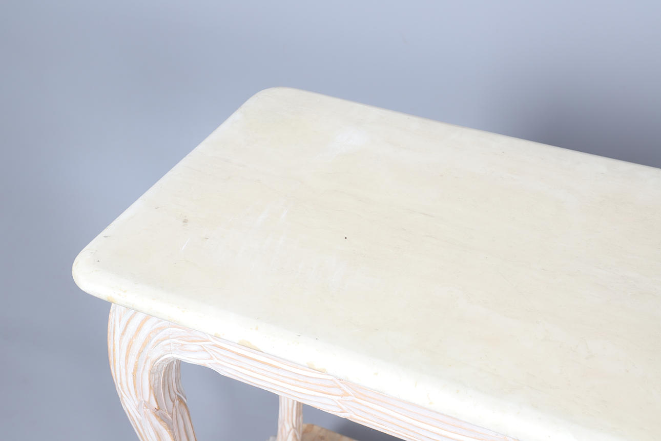 the rectangular marble top above a carved frieze, all raised on carved cabriole legs, 122cm x 46cm x 75cm high.