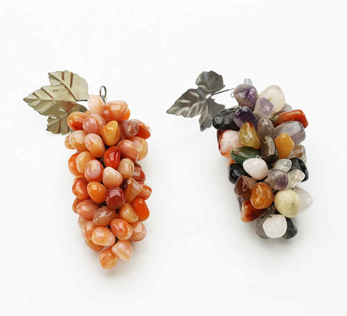 4344332. TABLE DECORATION. Stone and wood. In the form of grape bunches. Second half of the 20th century, probably Italy.