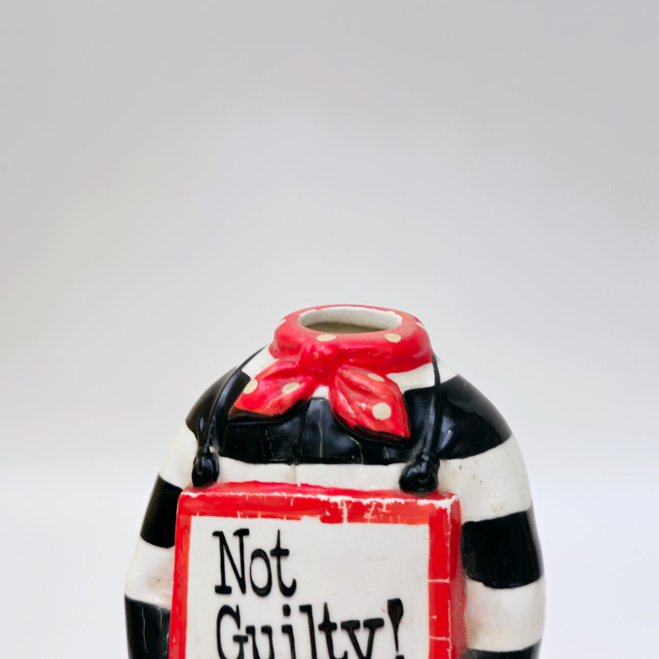 4344538. PRISONER. NOT GUILTY. MUSICAL BOTTLE. POLYCHROME CERAMIC. C. 1960S.