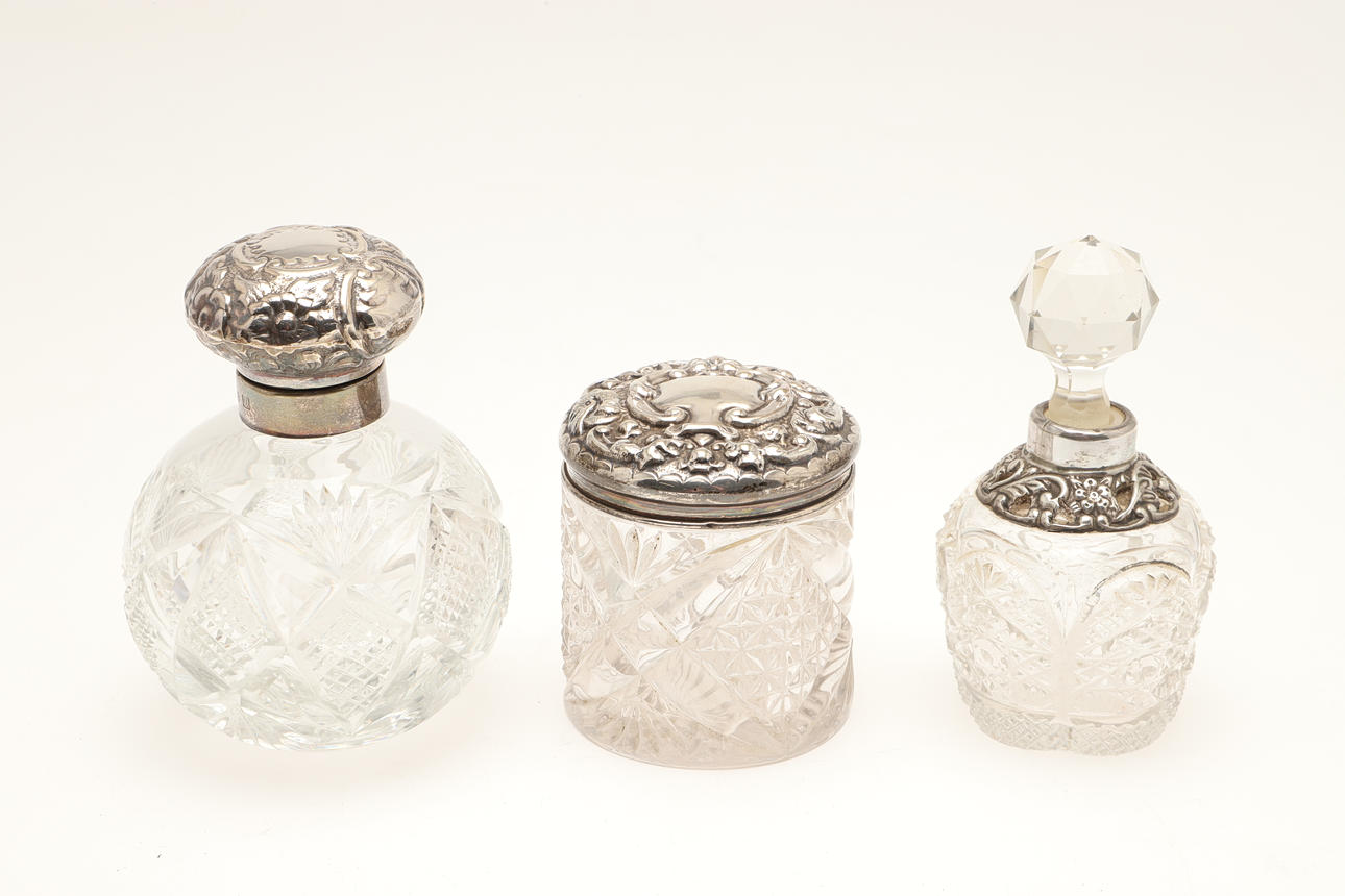 An Edwardian silver collared & cut glass scent bottle, Birmingham 1903.