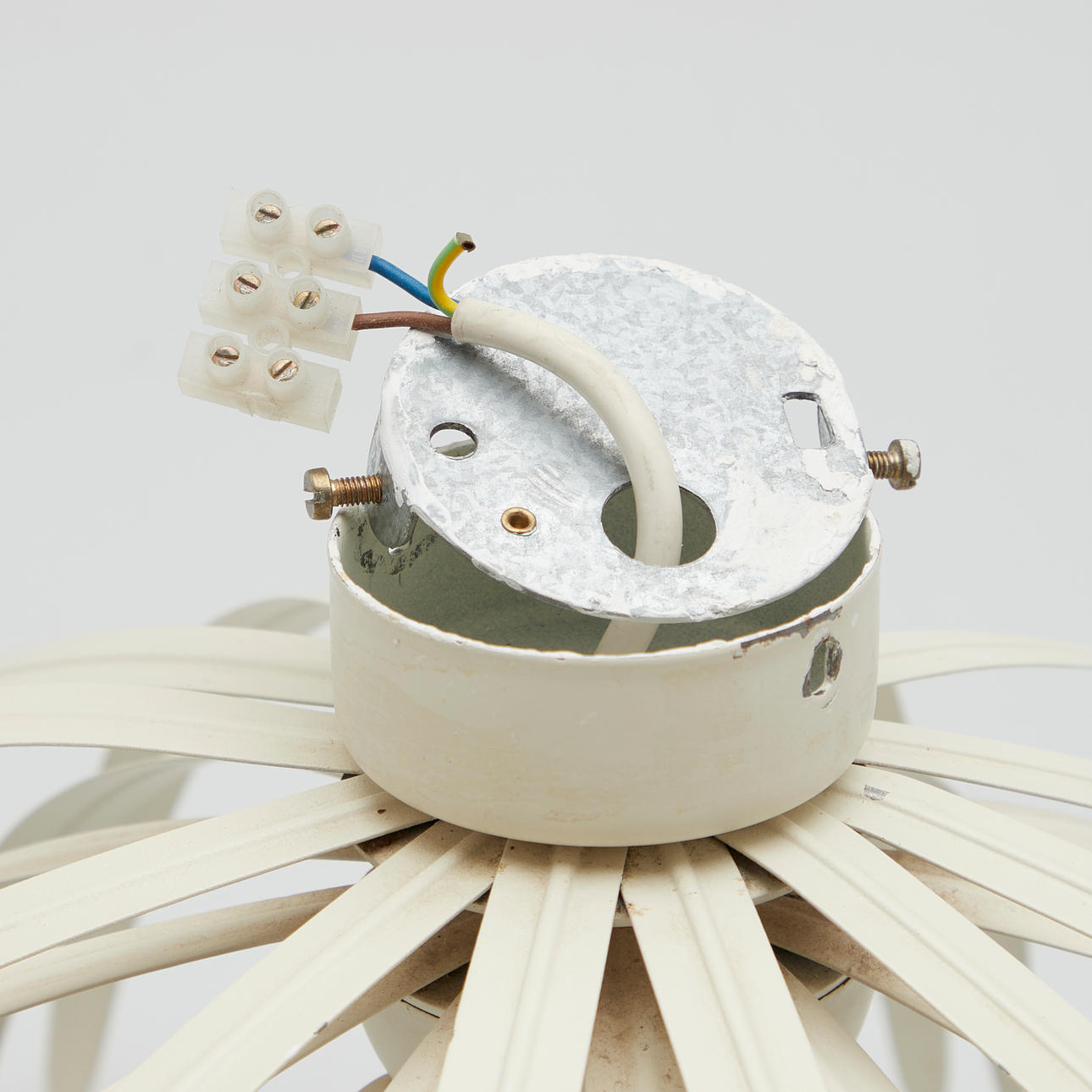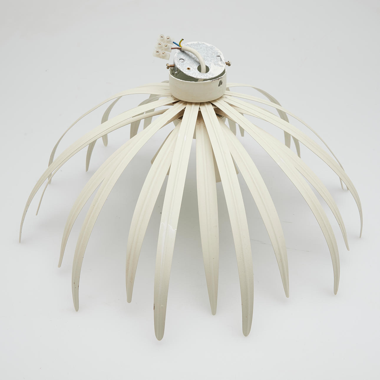 Ceiling light/wall lamp made of metal, painted white, provided with three bulbs, with manufacturer label.