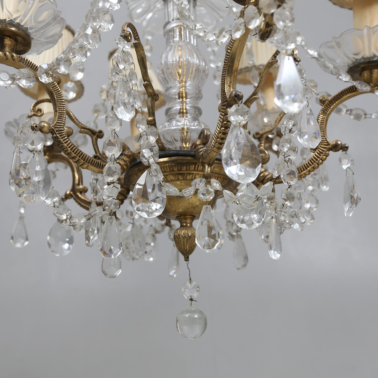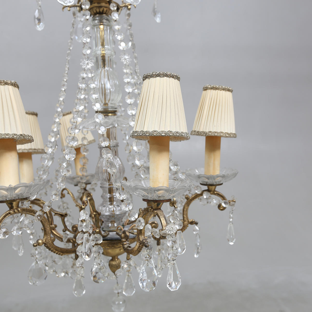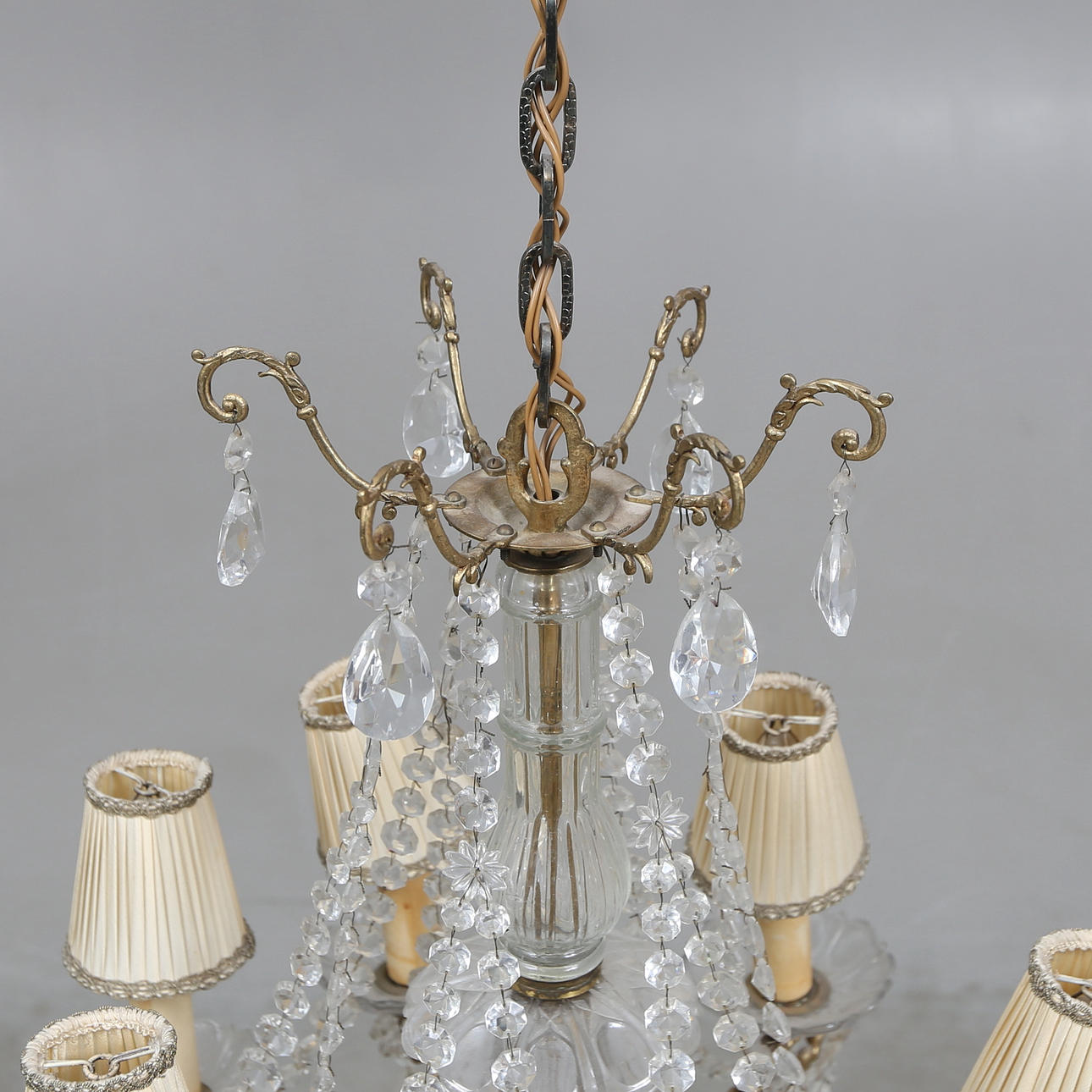 Hinged with prisms Length including chain approx. 112 cm Diameter approx. 45 cm.