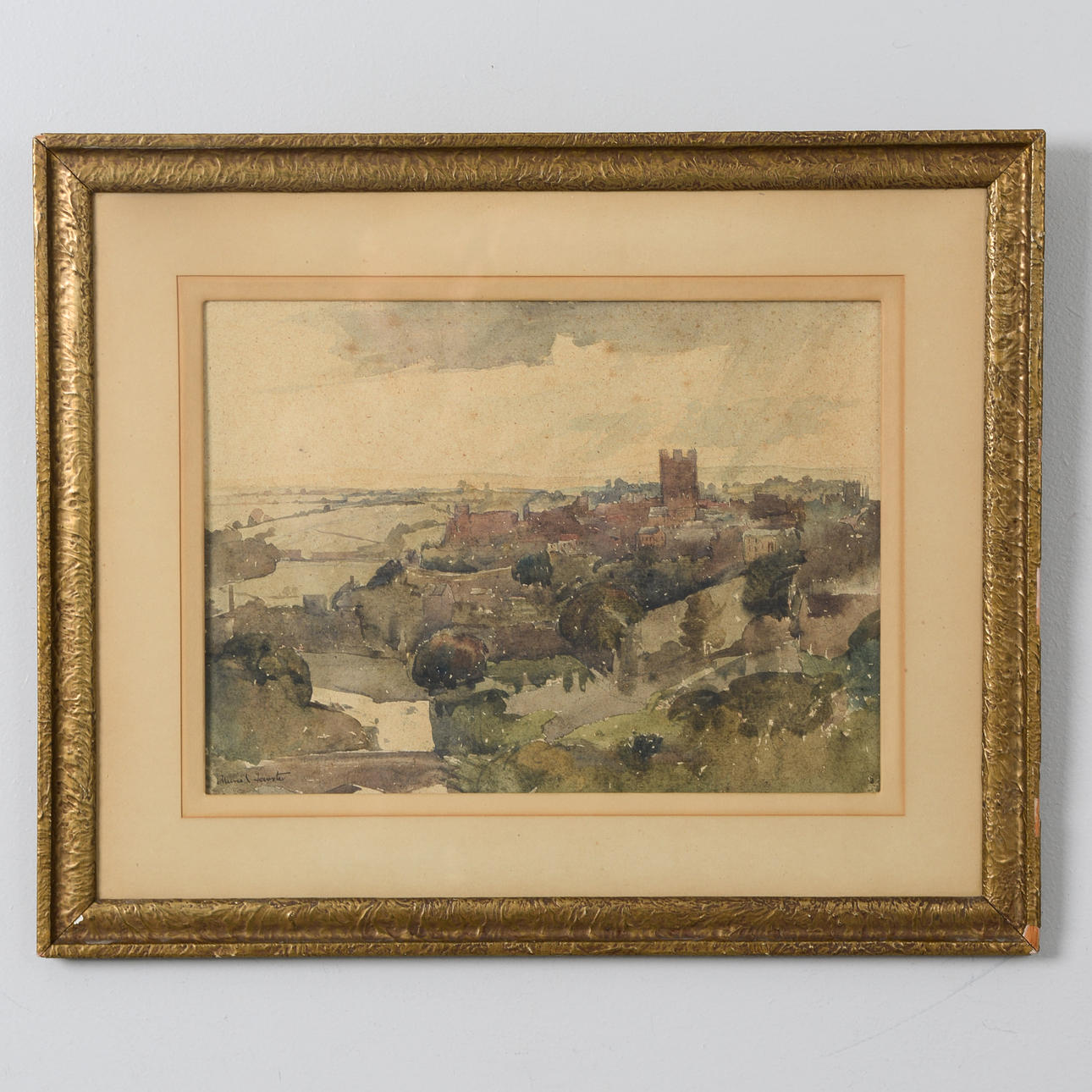 4345047. OIDENTIFIERAD KONSTNÄR. City view, watercolor, signed Muriel.
