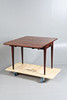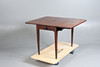 The rectangular top with drop leaves and a single drawer to one end and a dummy drawer to the other, 69cm high 89cm wide 50cm deep.