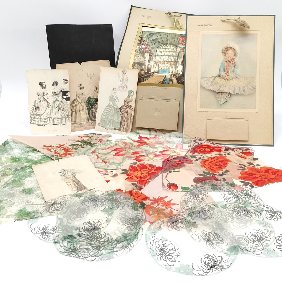 4345293. 3 x HAND PAINTED TEXTILE SAMPLES etc.
