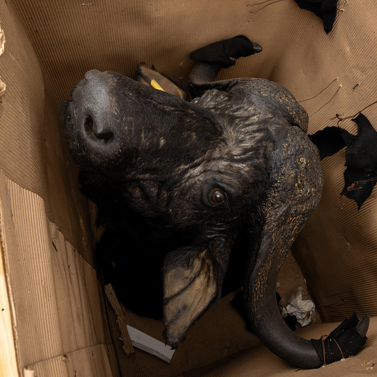 Mounted in box. Bow mounting, length from wall mount approx. 110, width between horns 95, height 80 cm.