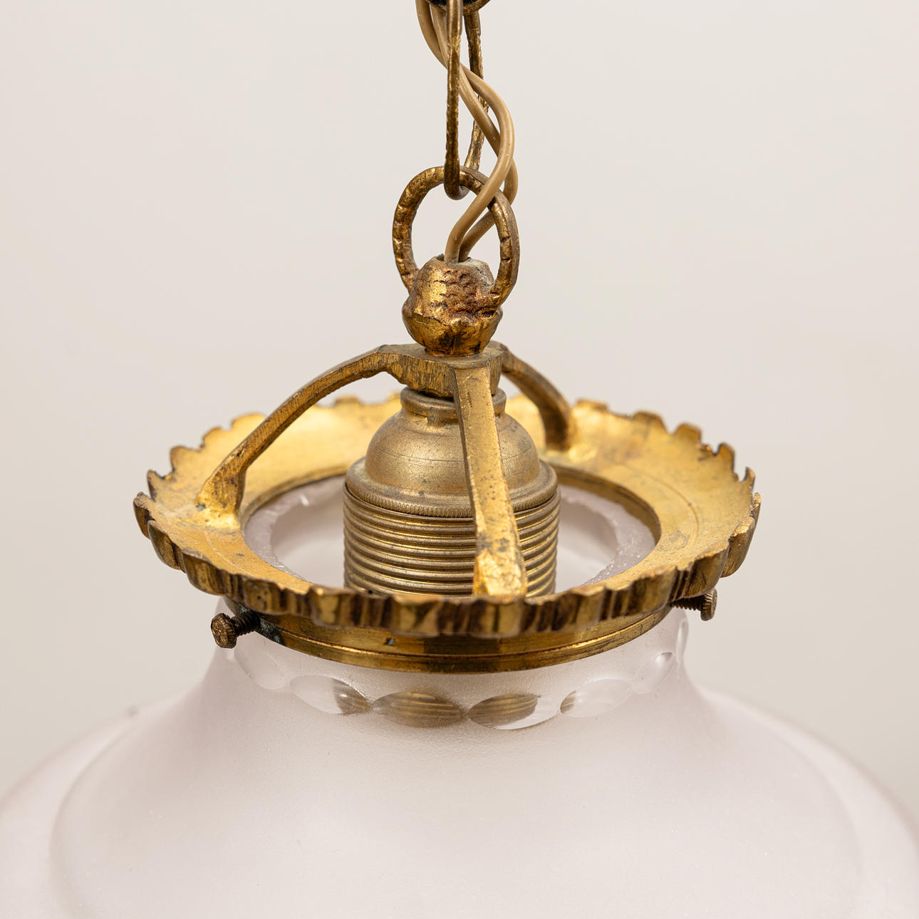Cup in violet-toned glass with polished decor, brass fittings made of cone knobs, among others.