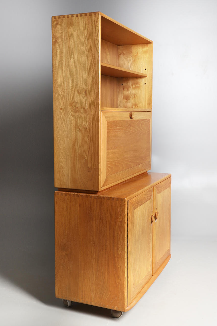 4346264. ERCOL - LIGHT ELM BUREAU BOOKCASE.