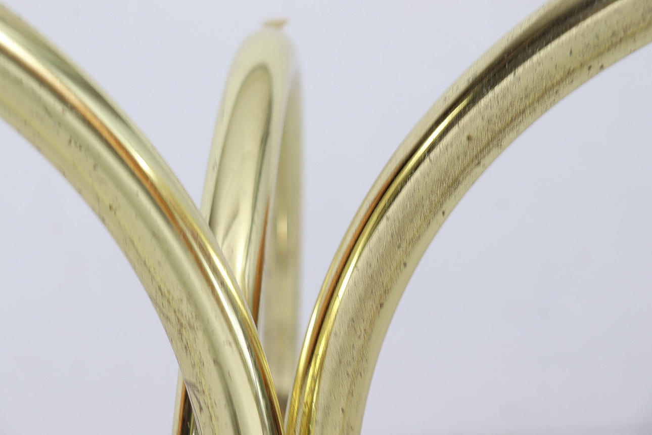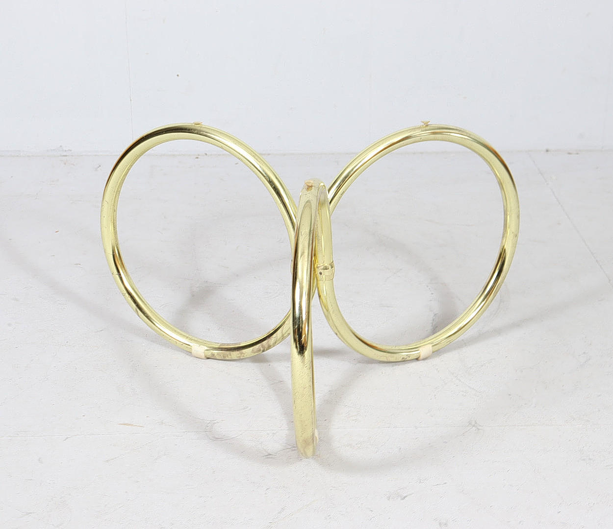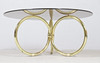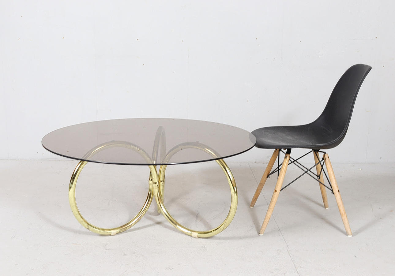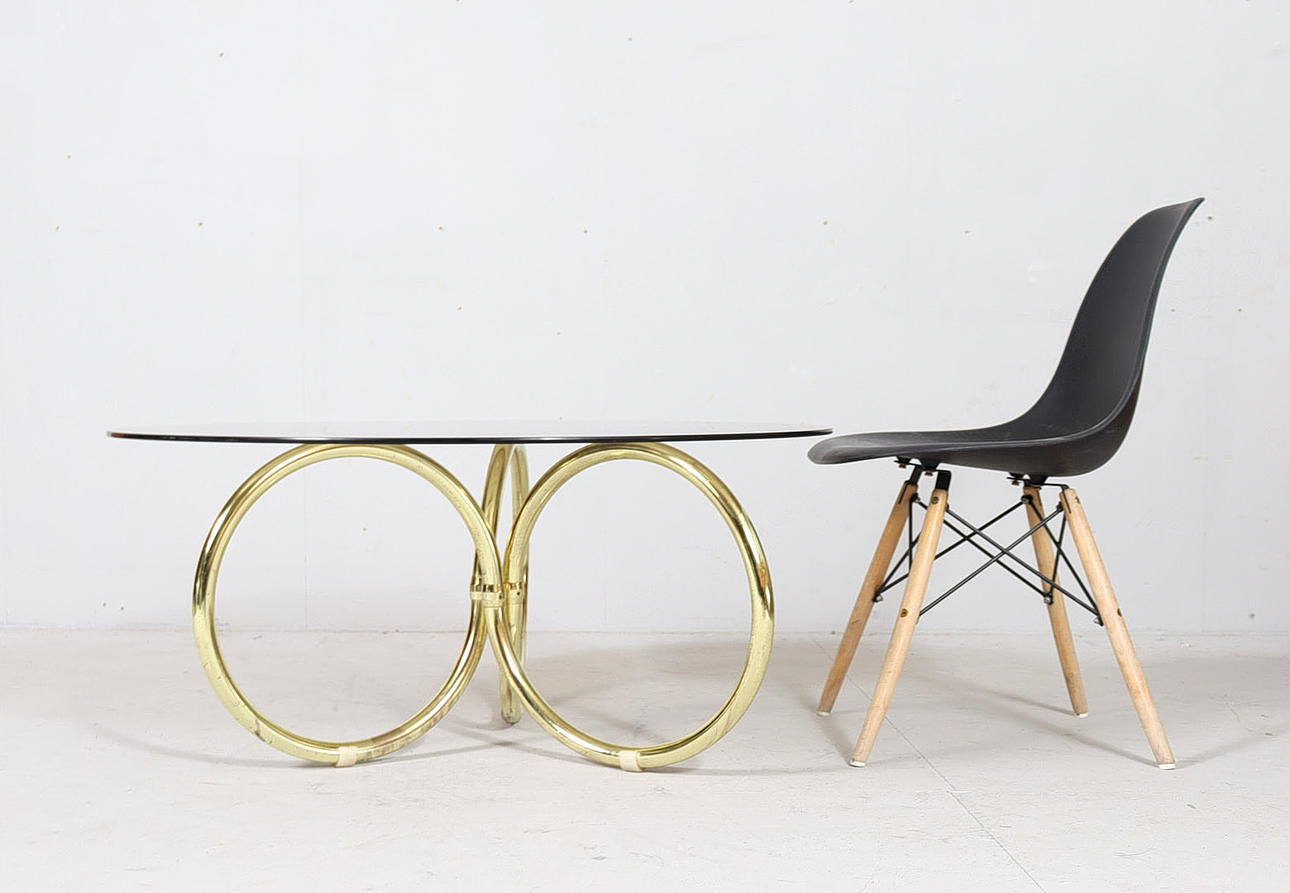 Mid century coffee table/coffee table, Italy, 1970s, solid construction made of metal in golden color, with a round glass top (loose),