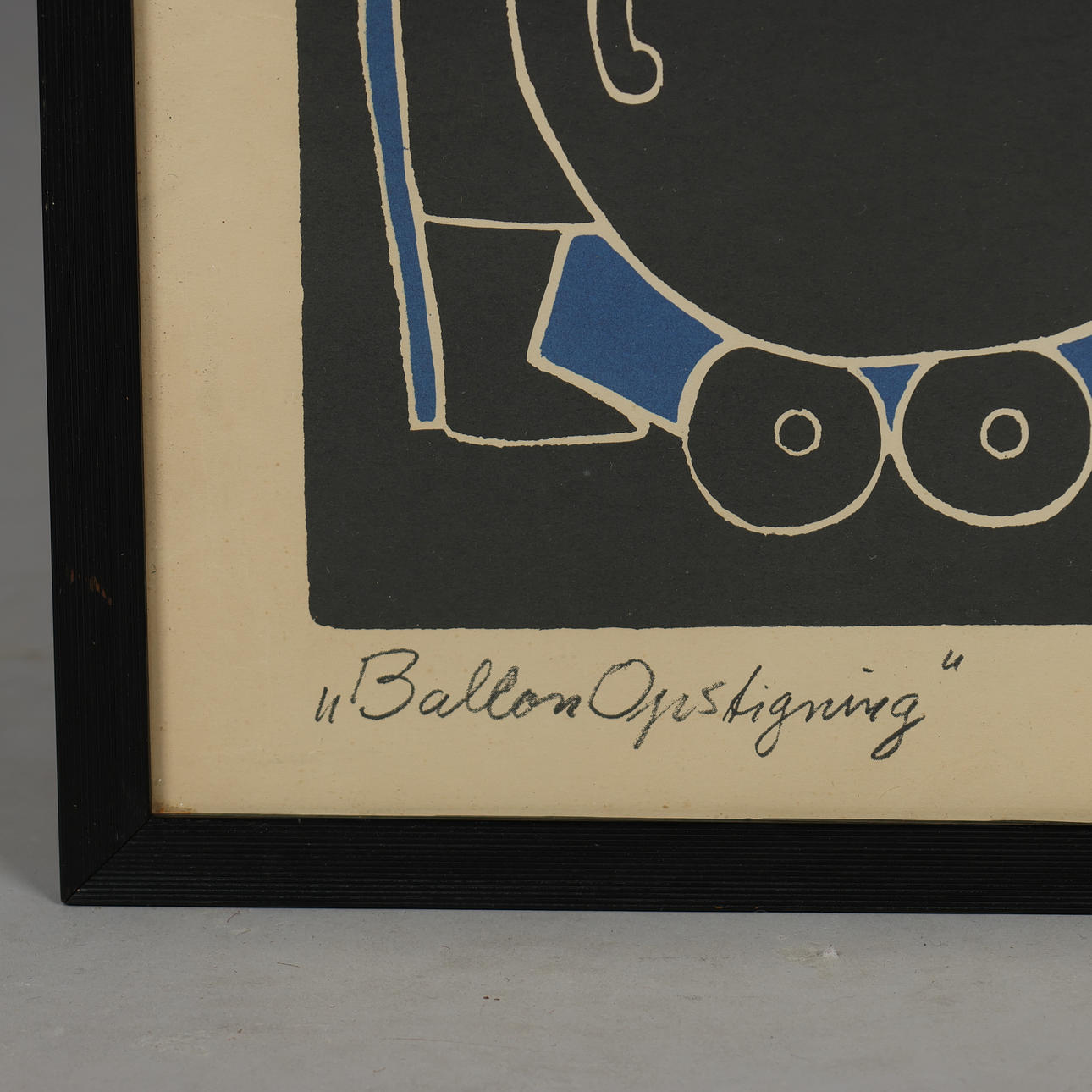 Henry Heerup, lithographic print 'Balloon ascent', print signed. Light dimensions 46 x 59.5 cm, framed 49 x 62.5 cm.