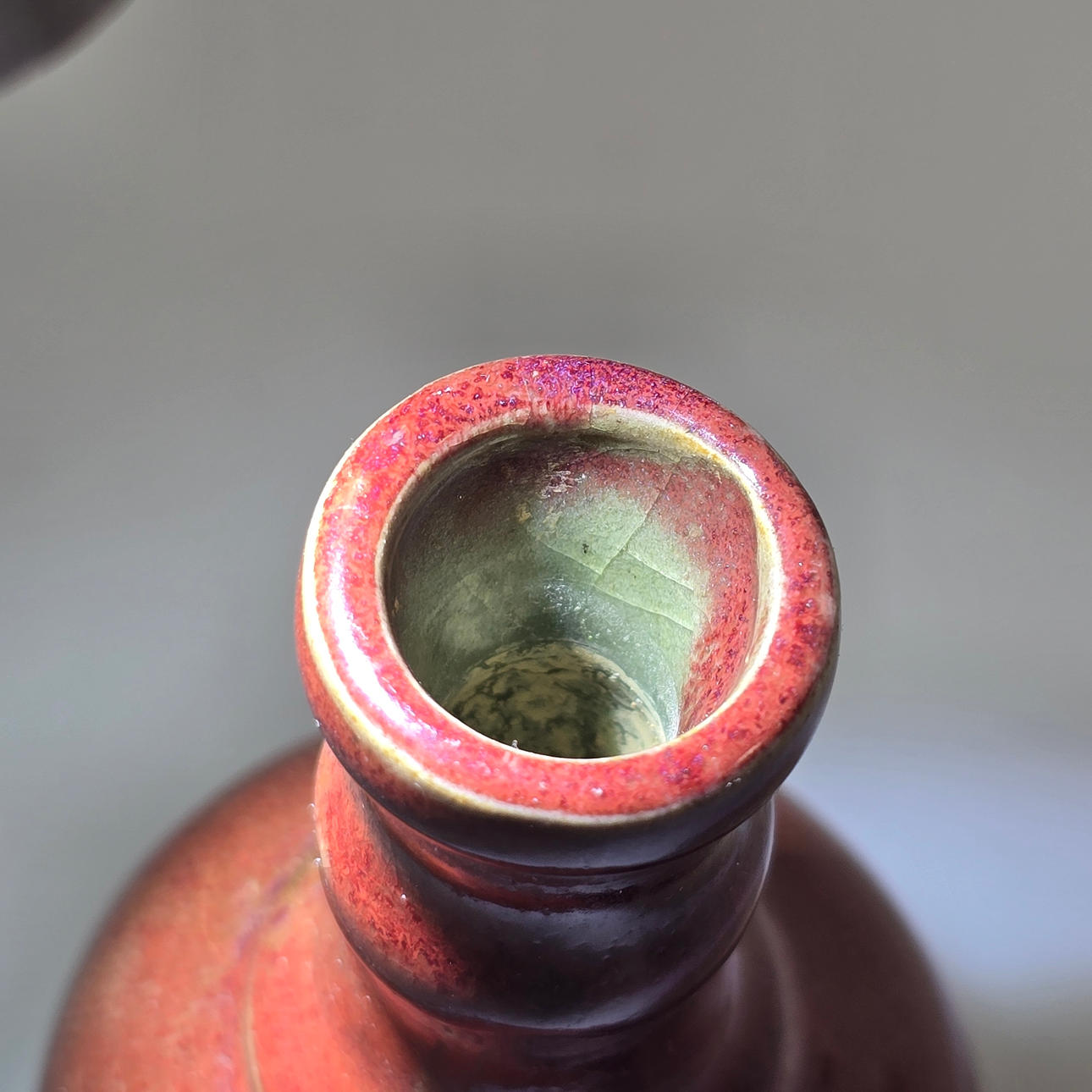 Small narrow-necked vase - China, ceramic, dark red glaze with fine transparent craquele net,