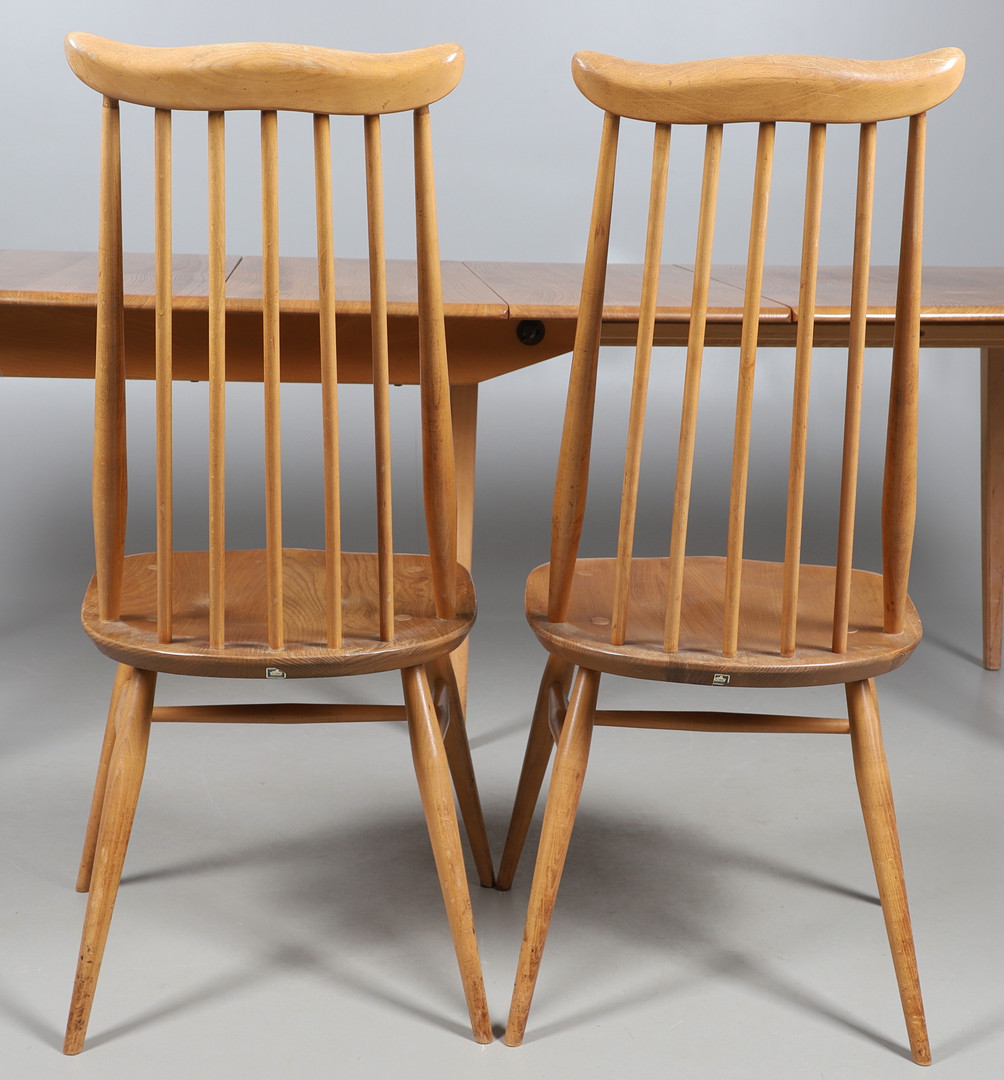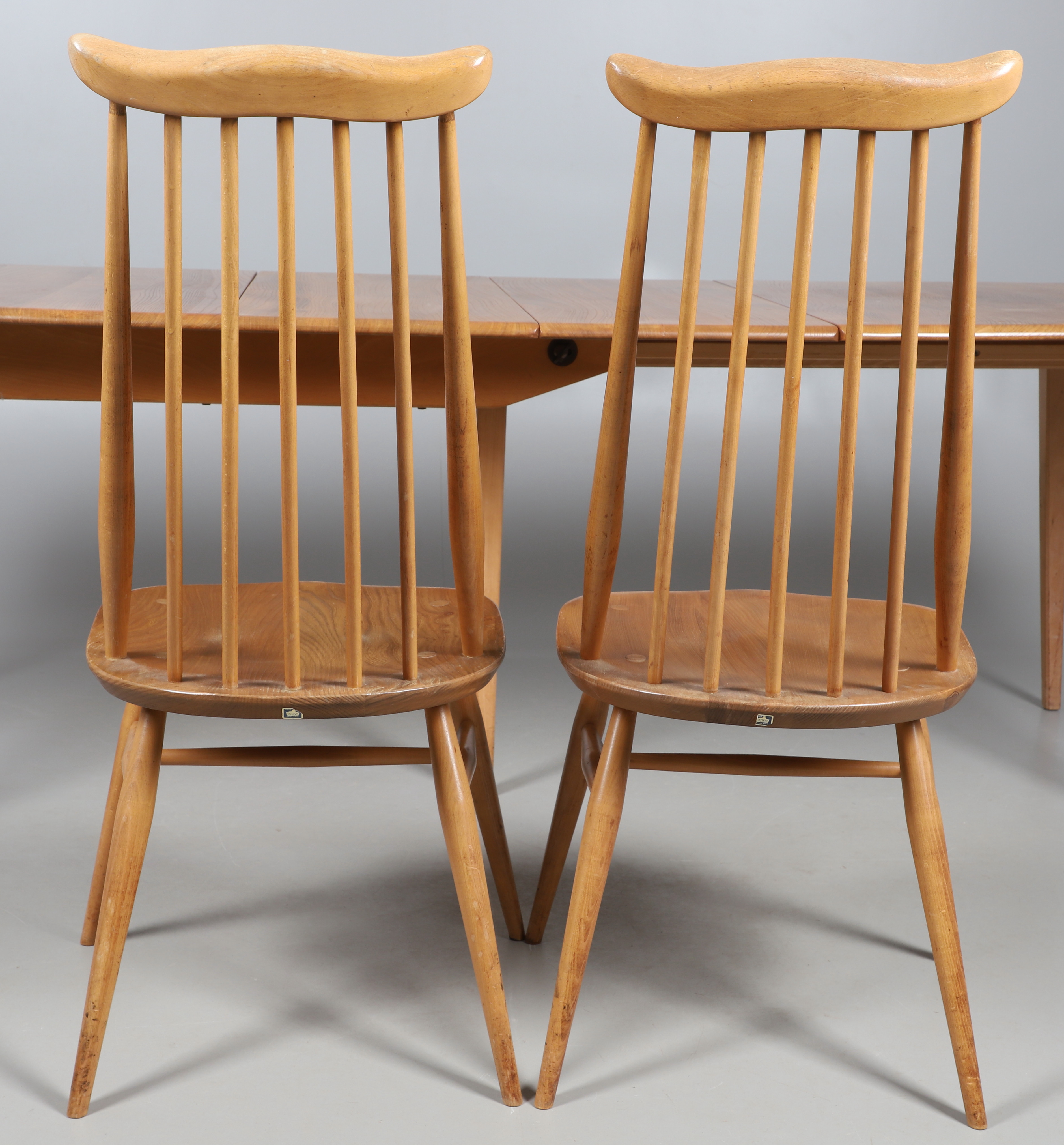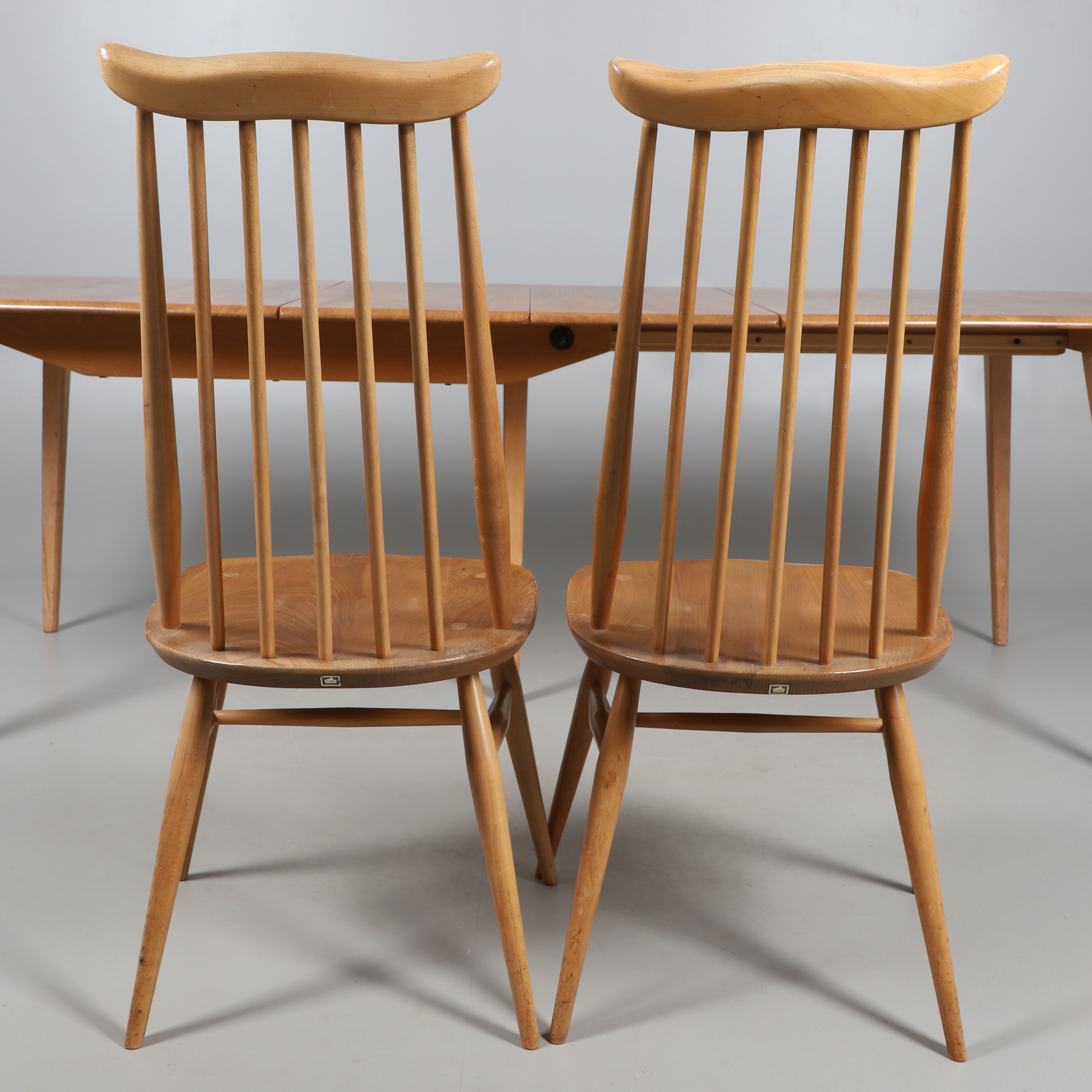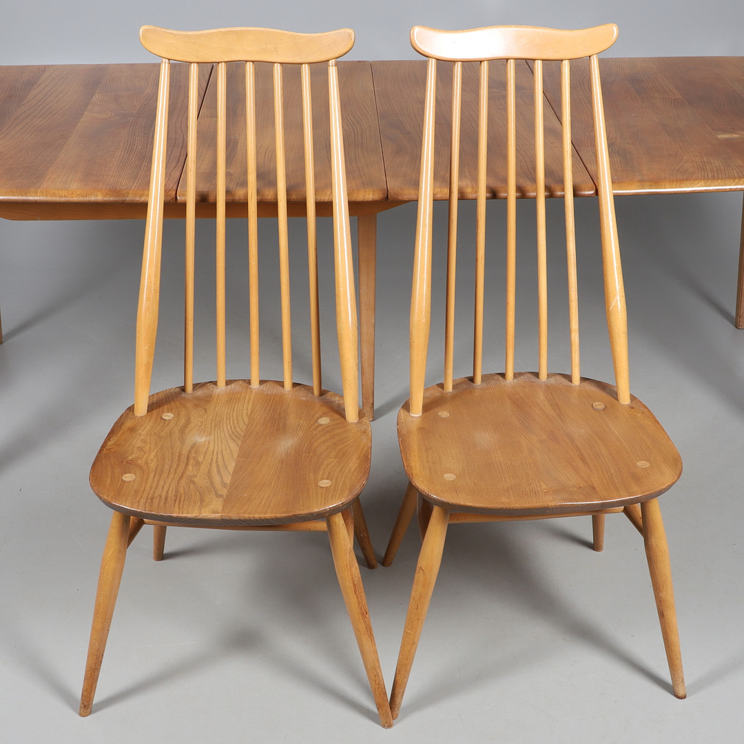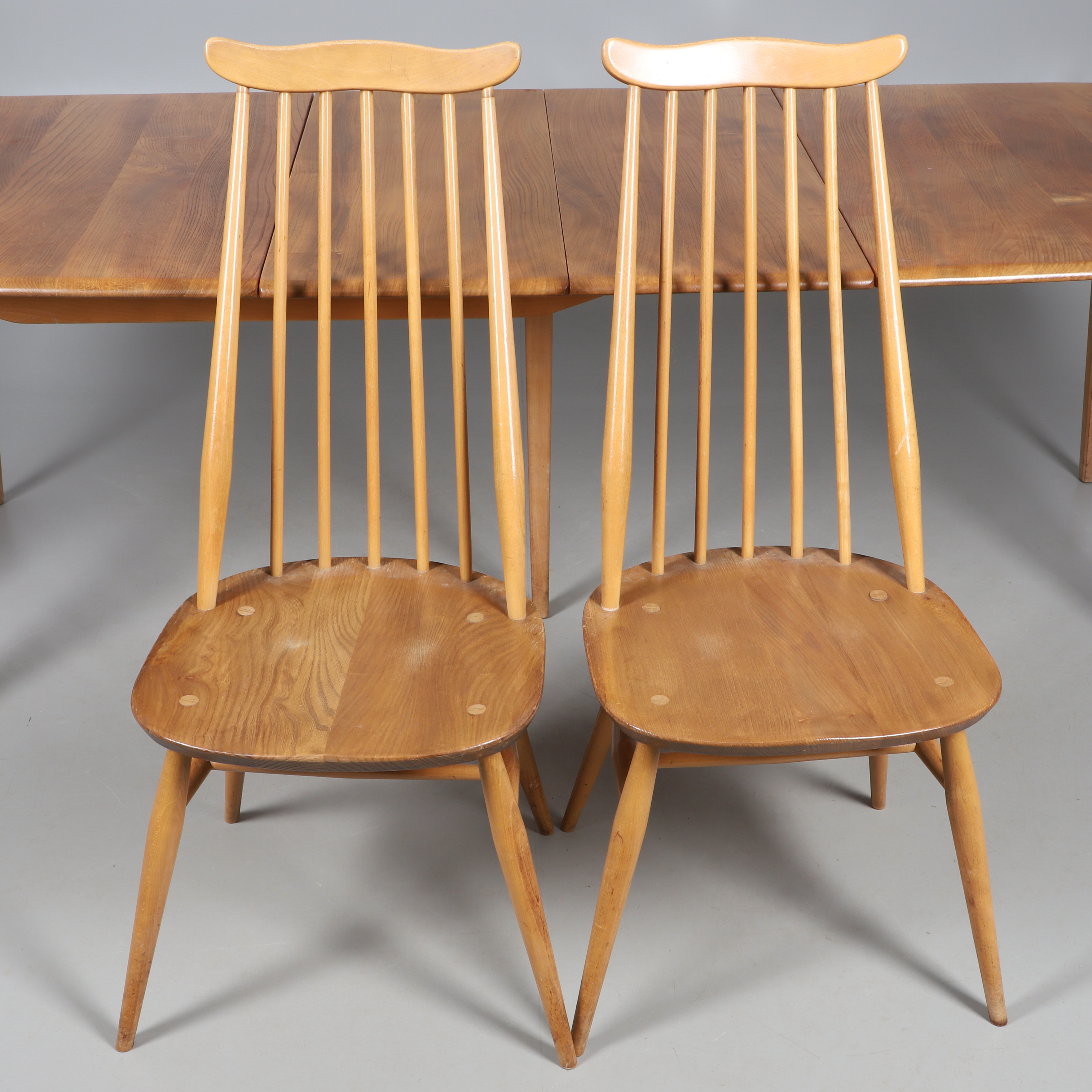 4347143. MID CENTURY ERCOL EXTENDING DINING TABLE & CHAIRS.