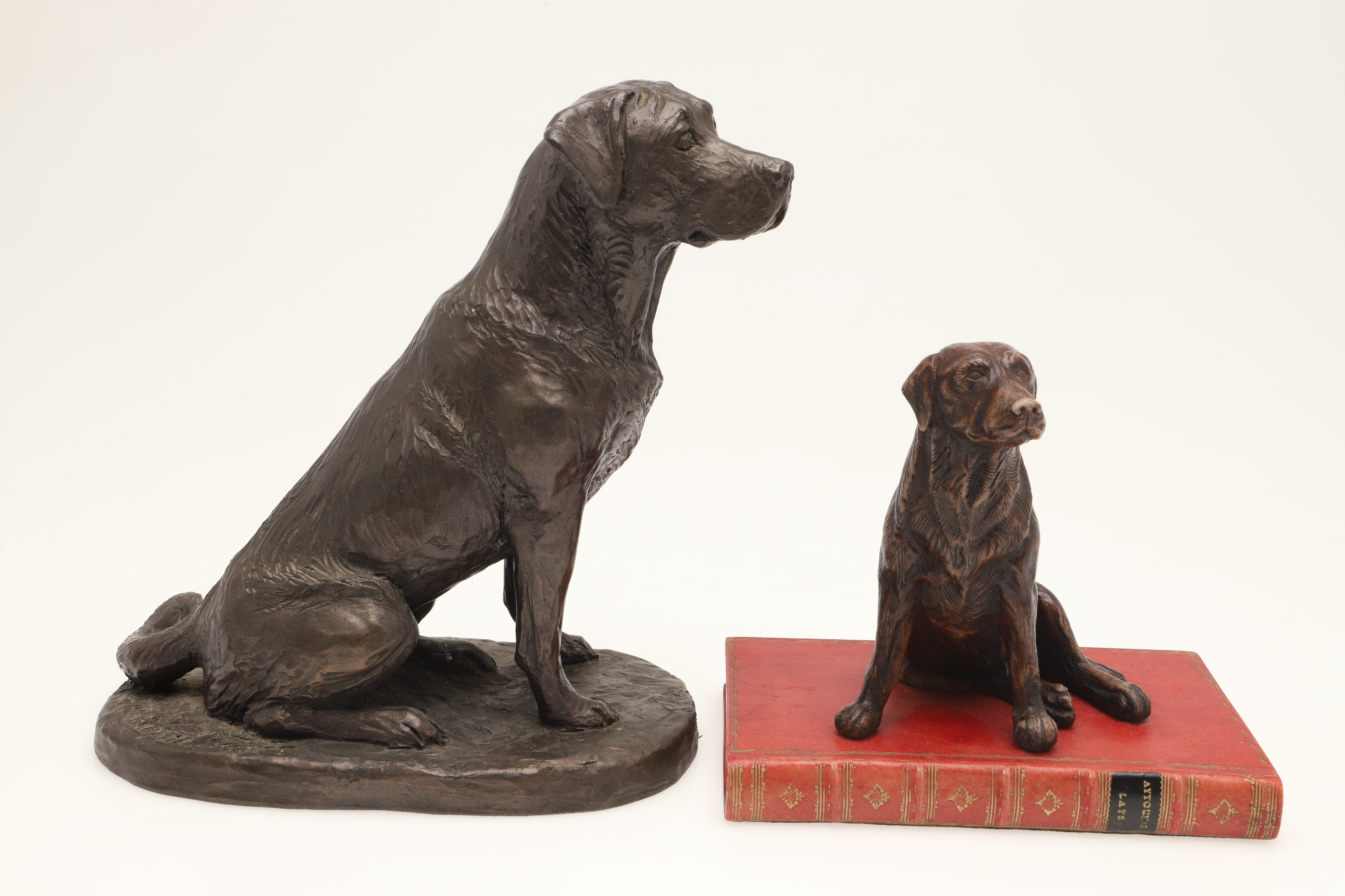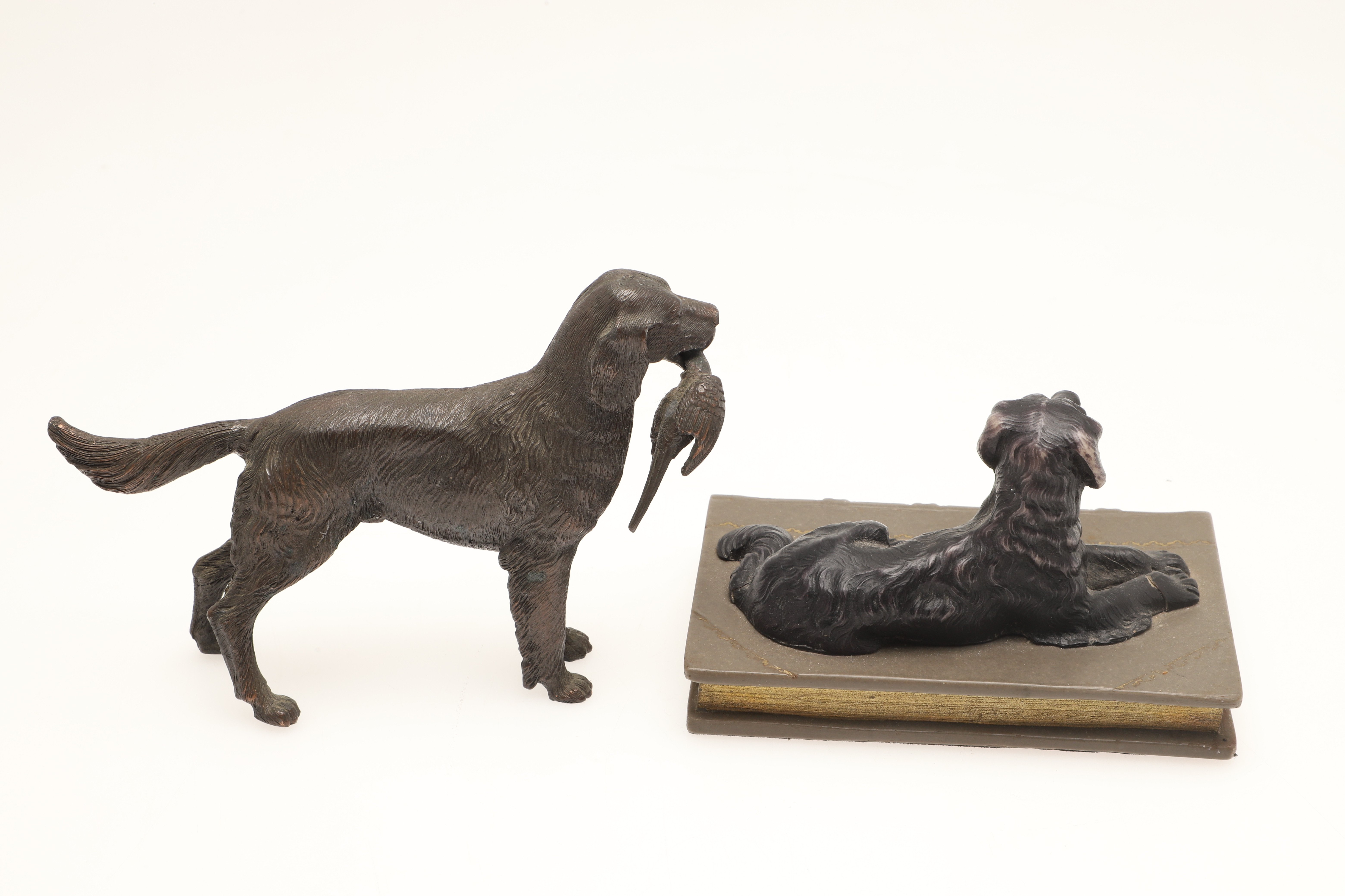 4347338. FOUR MODERN BRONZED DOG SCULPTURES.