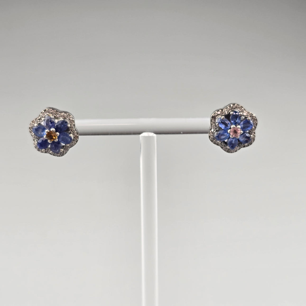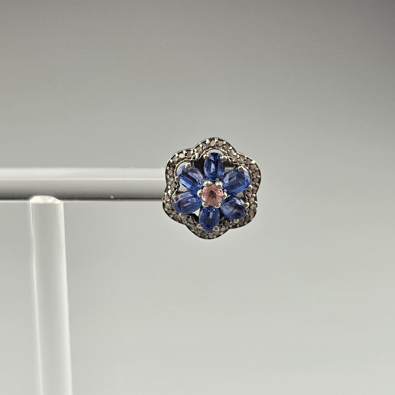 6.5 grams Kyanite Gemstone Studs with 0.80 ct Diamond Accents, Gemstone weight 4.3 cts, 925 Silver,