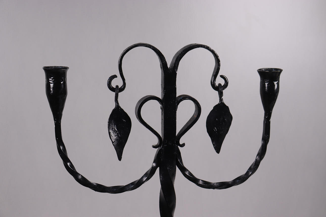 4347513. A wrought candlestick, 2 candle holders, 20th century.