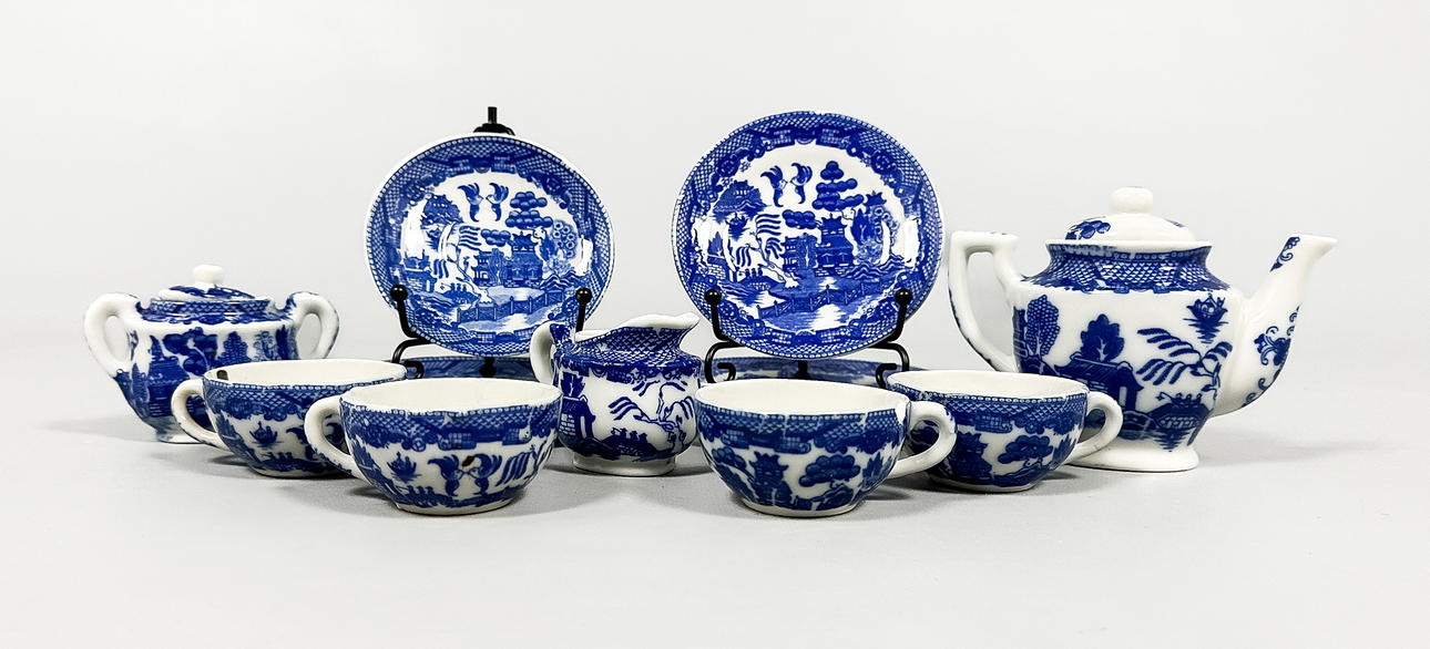 4 cups, height 3 cm 4 barrels, diameter 8.5 cm 4 side dishes, diameter 10 cm 1 jug, height 9 cm 1 sugar bowl, height 5.5 cm 1 cream jug, height 5 cm.