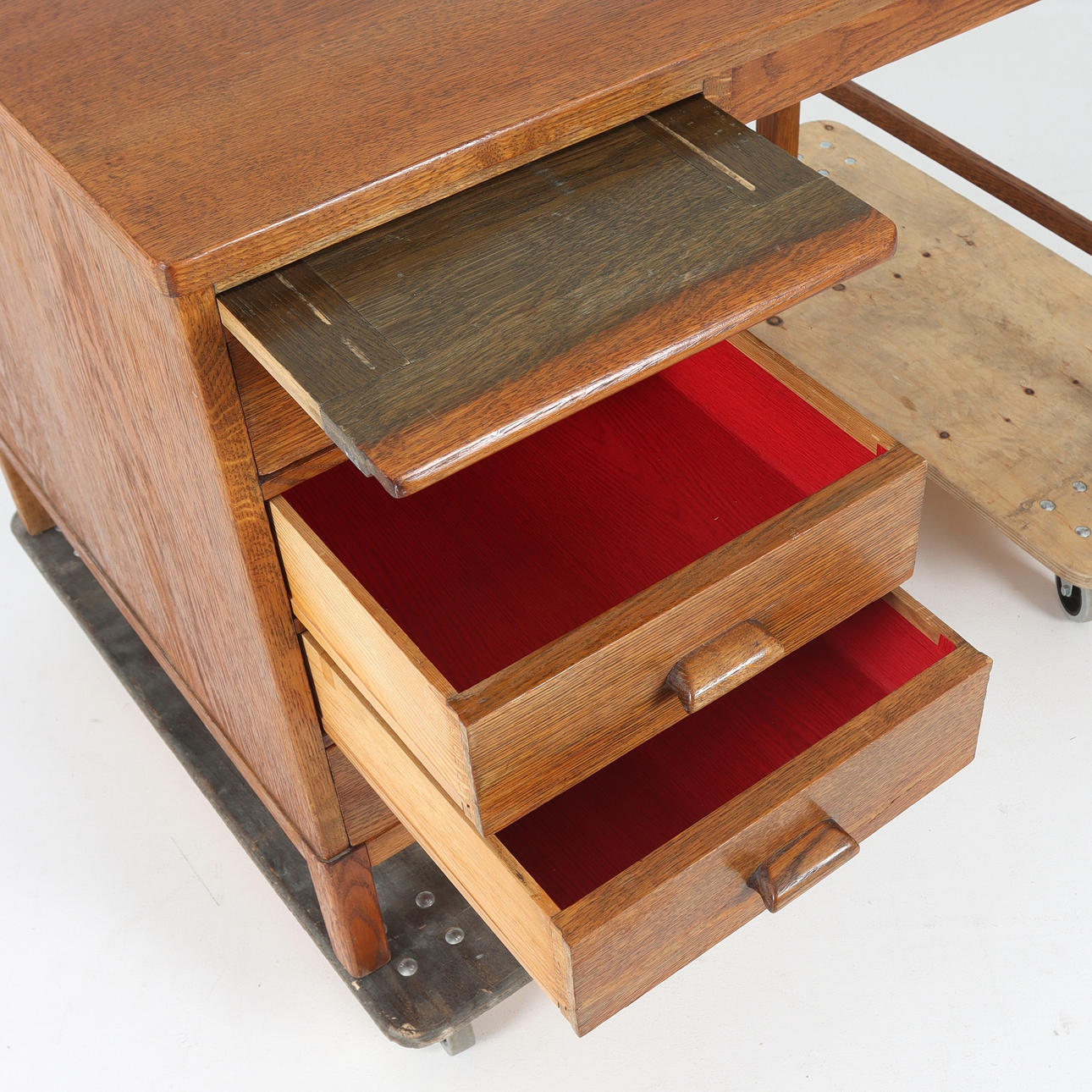 4348018. DESK, with pull-out top, oak, 1910/20's.