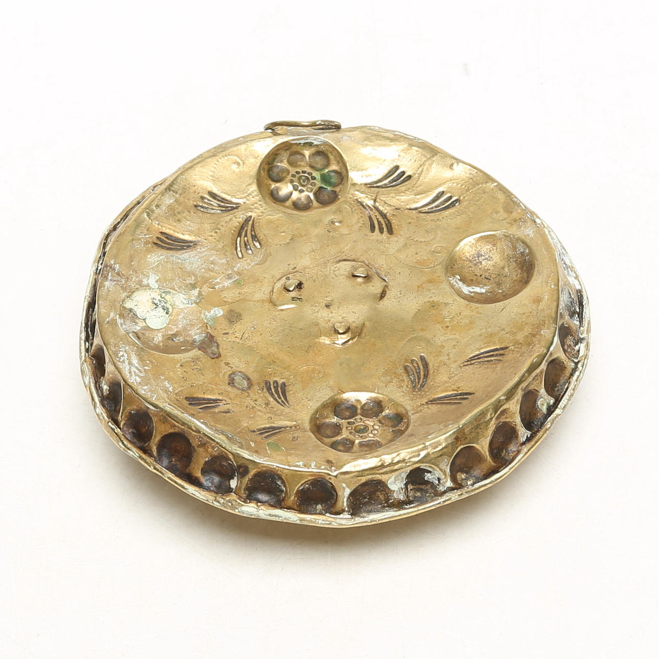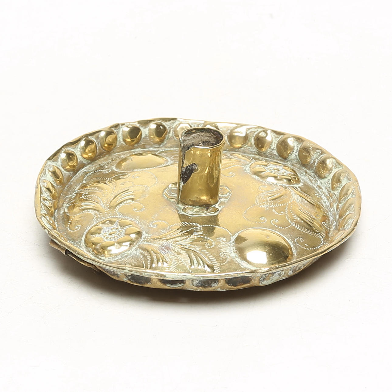 A brass candlestick, probably 17th/19th century.