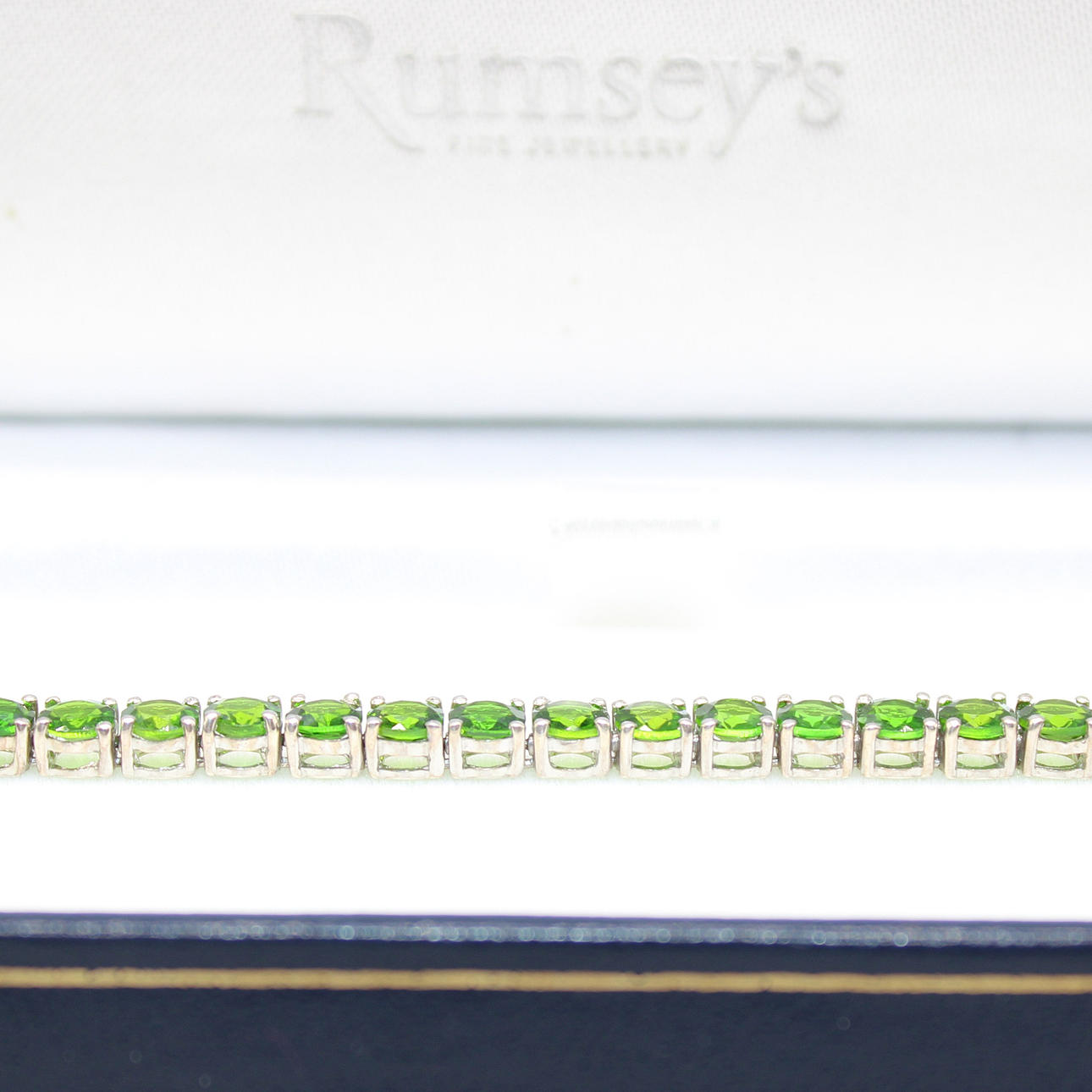 A Natural Green Diopside Line Bracelet In Silver (Stamped)