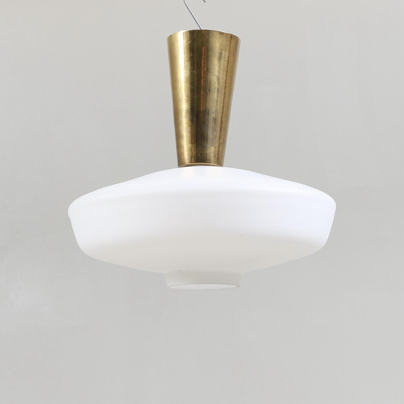 4348958. A 1950's opal glass and brass ceiling lamp.