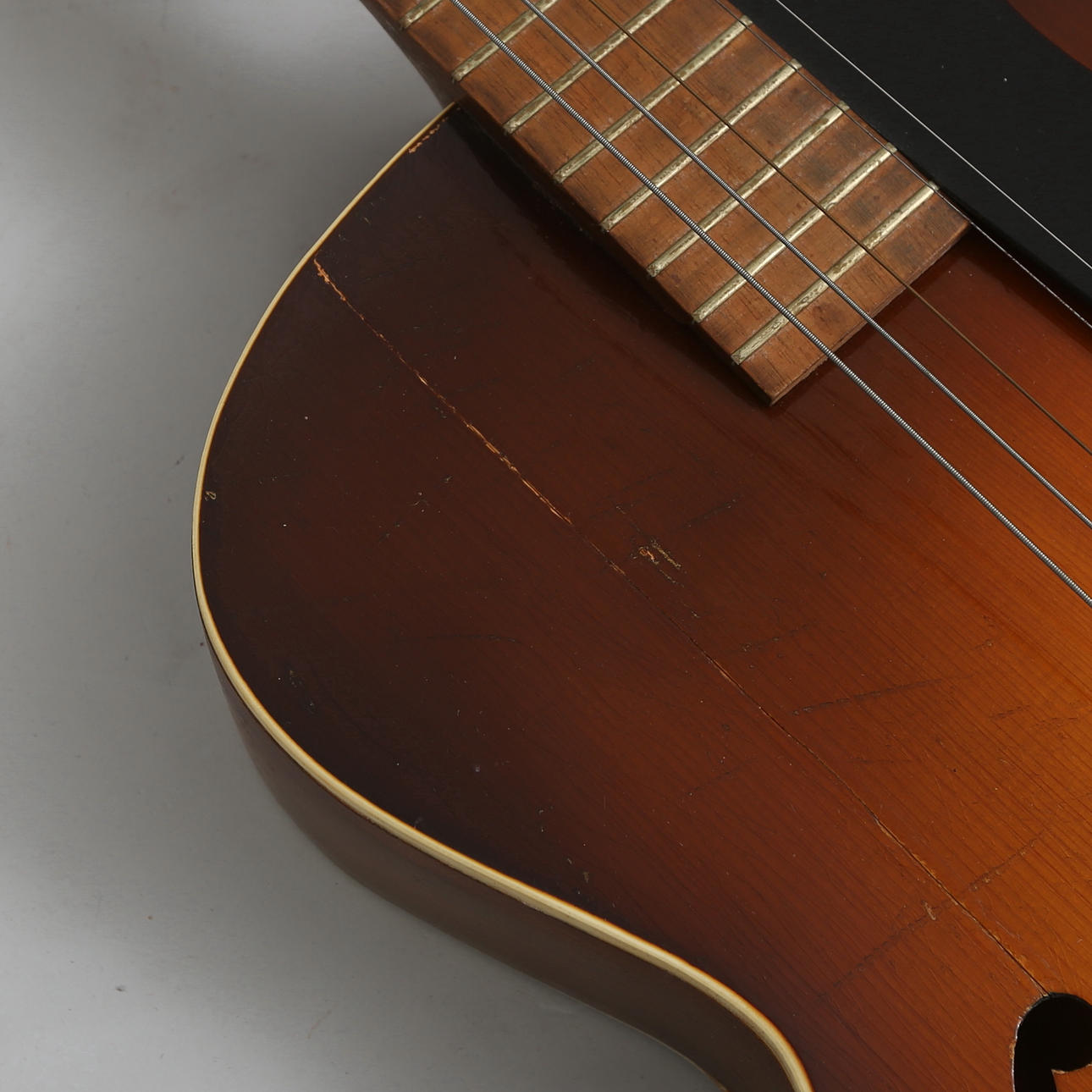 In bag. Guitar length approx. 103 cm. Case length approx. 115 cm.