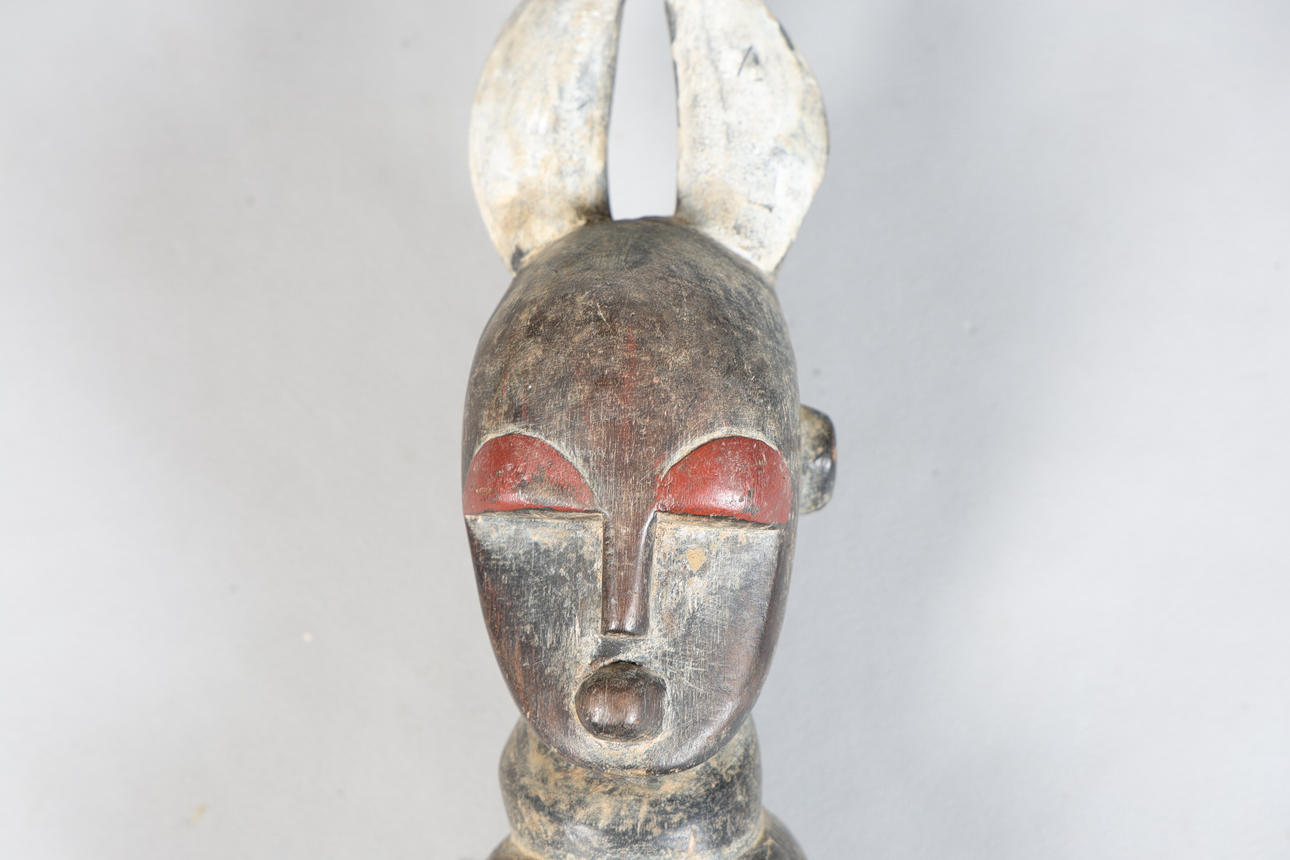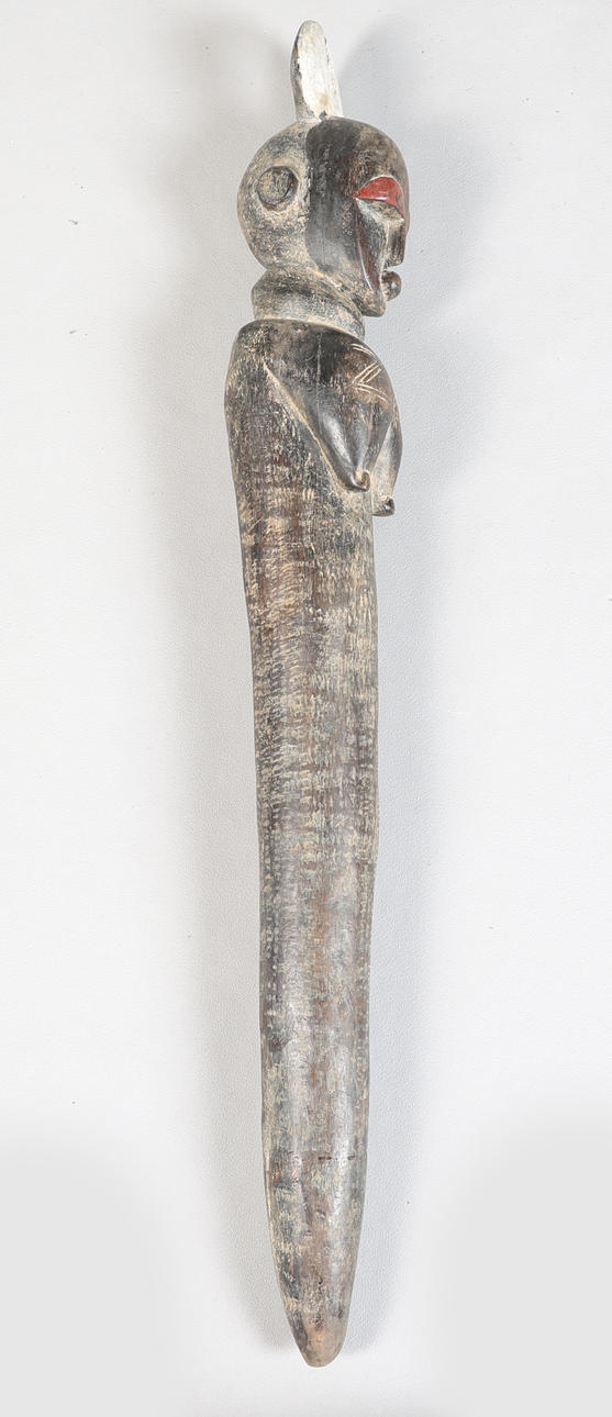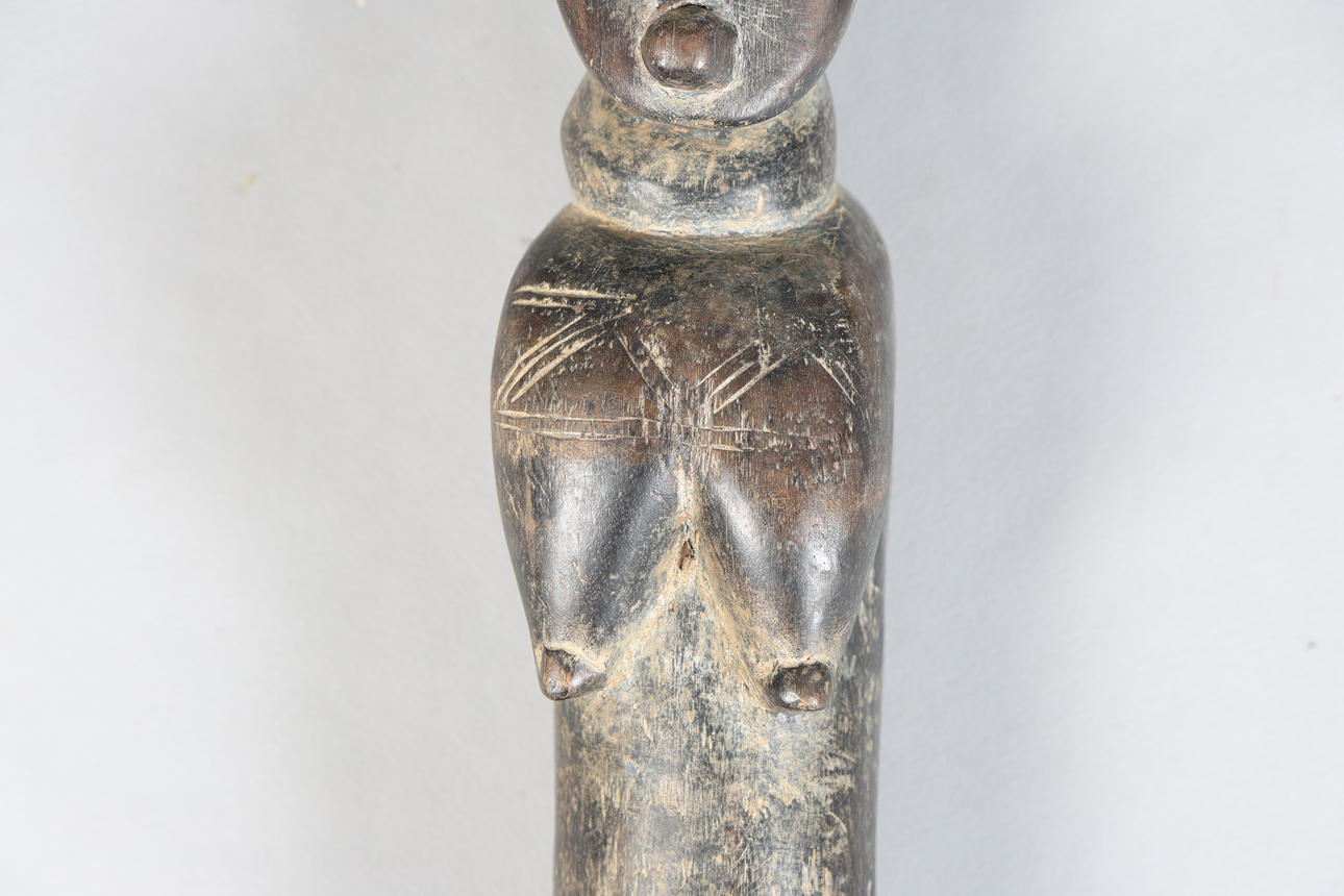 Second half of the 20th century, carved in the form of a figure wearing a headdress above a tapering column, 85cm high