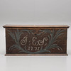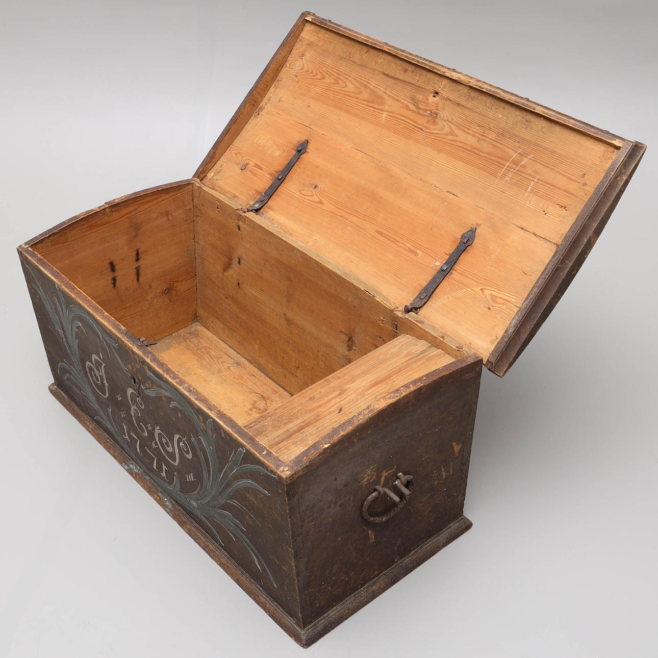 Normal wear and tear, Hinges with wear, loss of decor, possibly later renovated. There is no key. unlocked.