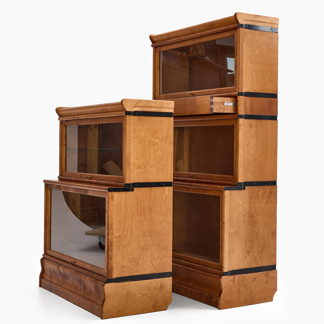- 3 smaller cabinets with glass door, height 36.5 cm, depth 29.5 cm