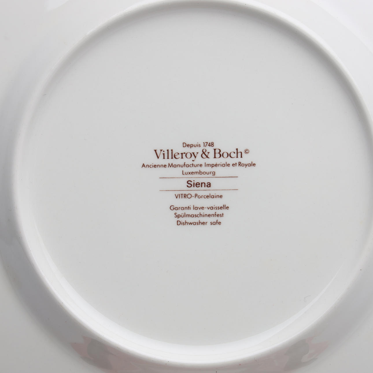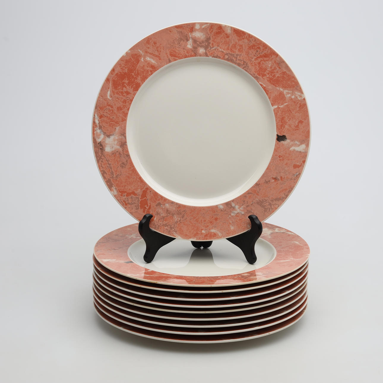 10 dinner plates, diameter 24 cm 5 deep plates, diameter 23 cm 10 side dishes, diameter 21 cm.