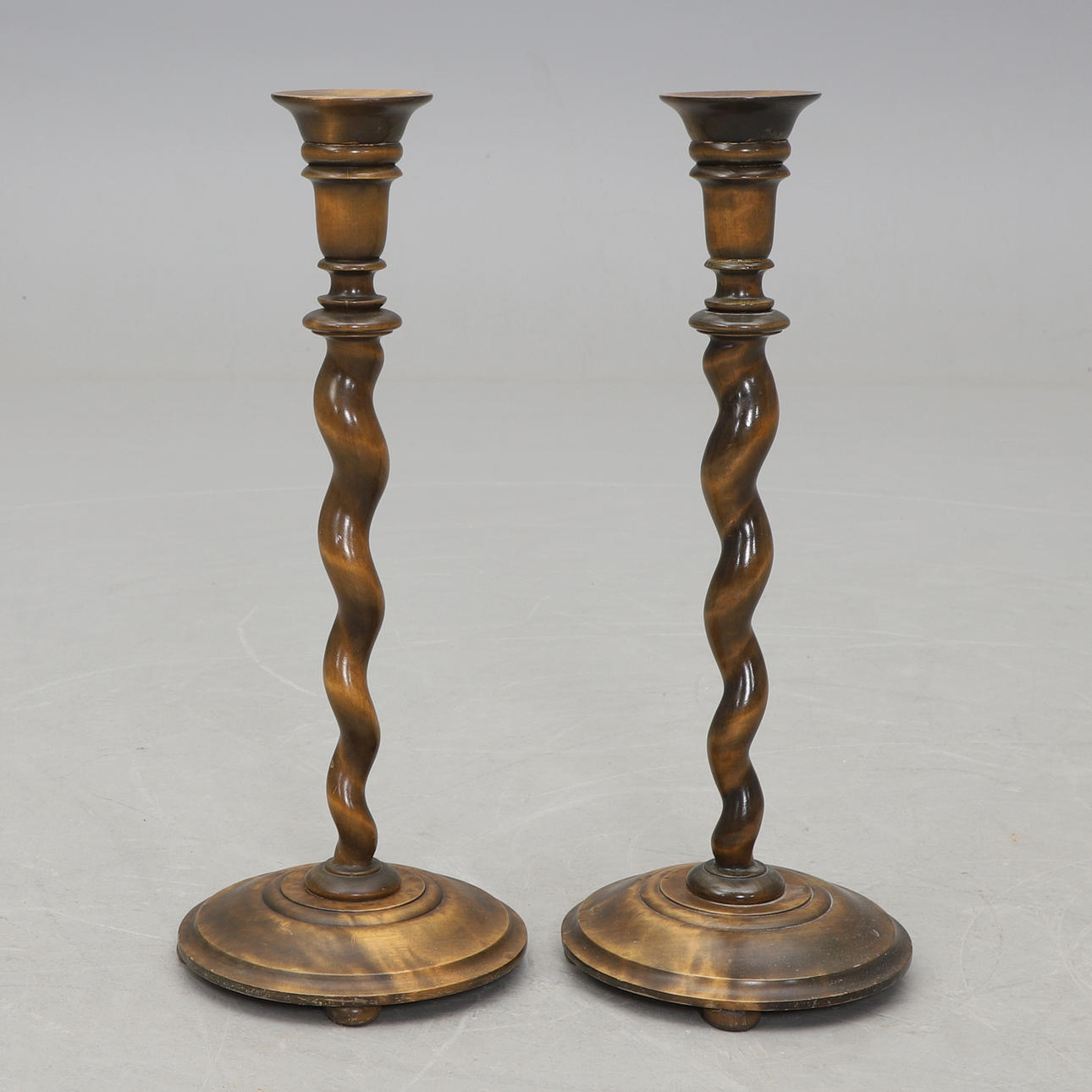 Dark veined birch. Twisted foot. Height 61 cm. For candles with a diameter of about 5 cm.