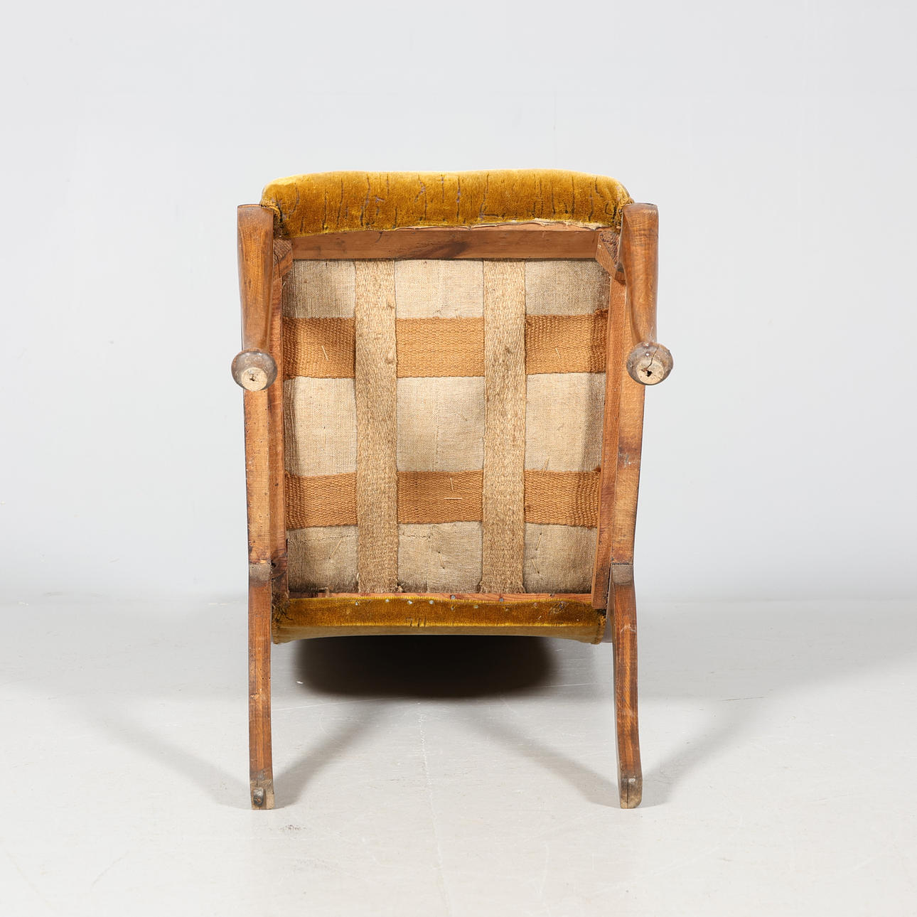 Normal wear and tear, wear on the fabric as well as worm-eaten wood.