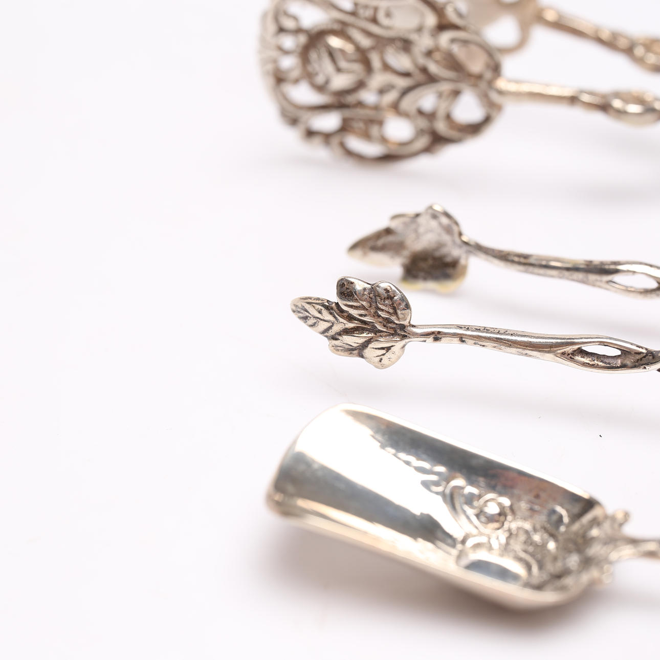 Sugar spoon, cookie tongs and sugar seaweed.