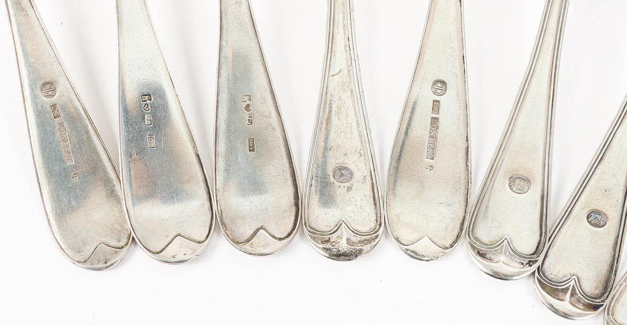 4350809. 12 silver dining spoons, 19th century.